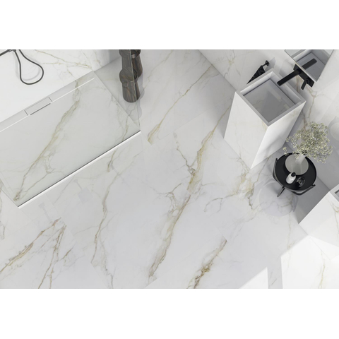 De SAMPLE Cifre Cerámica Vloer- en wandtegel Diamond Gold Marmer look Glans Wit straalt pure luxe uit. De hoogwaardige materialen en afwerking zorgen voor een exclusieve uitstraling die je ruimte transformeert tot een chique omgeving. De subtiele glans en marmeren look geven een gevoel van weelde en verfijning. Laat jezelf omringen door luxe met deze prachtige tegel die een vleugje glamour toevoegt aan elke kamer.