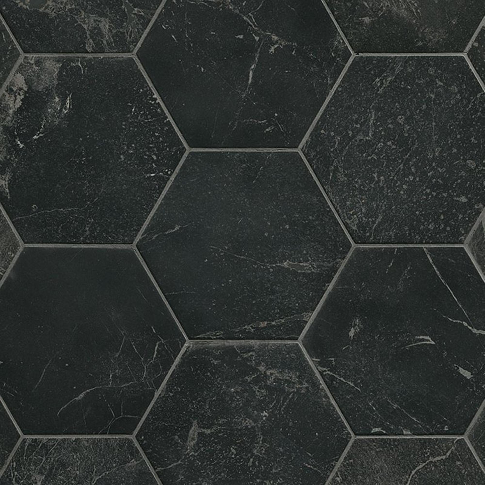 Deze vloer- en wandtegel onderscheidt zich door zijn prachtige marmeren look en matte afwerking. Het grafietkleurige patroon voegt diepte en textuur toe aan elke ruimte, terwijl de hexagonale vorm een speels en eigentijds element toevoegt. Of het nu in de badkamer, keuken of een andere ruimte is, deze tegel creëert een verfijnde en elegante sfeer die de aandacht trekt en bewondering oogst.