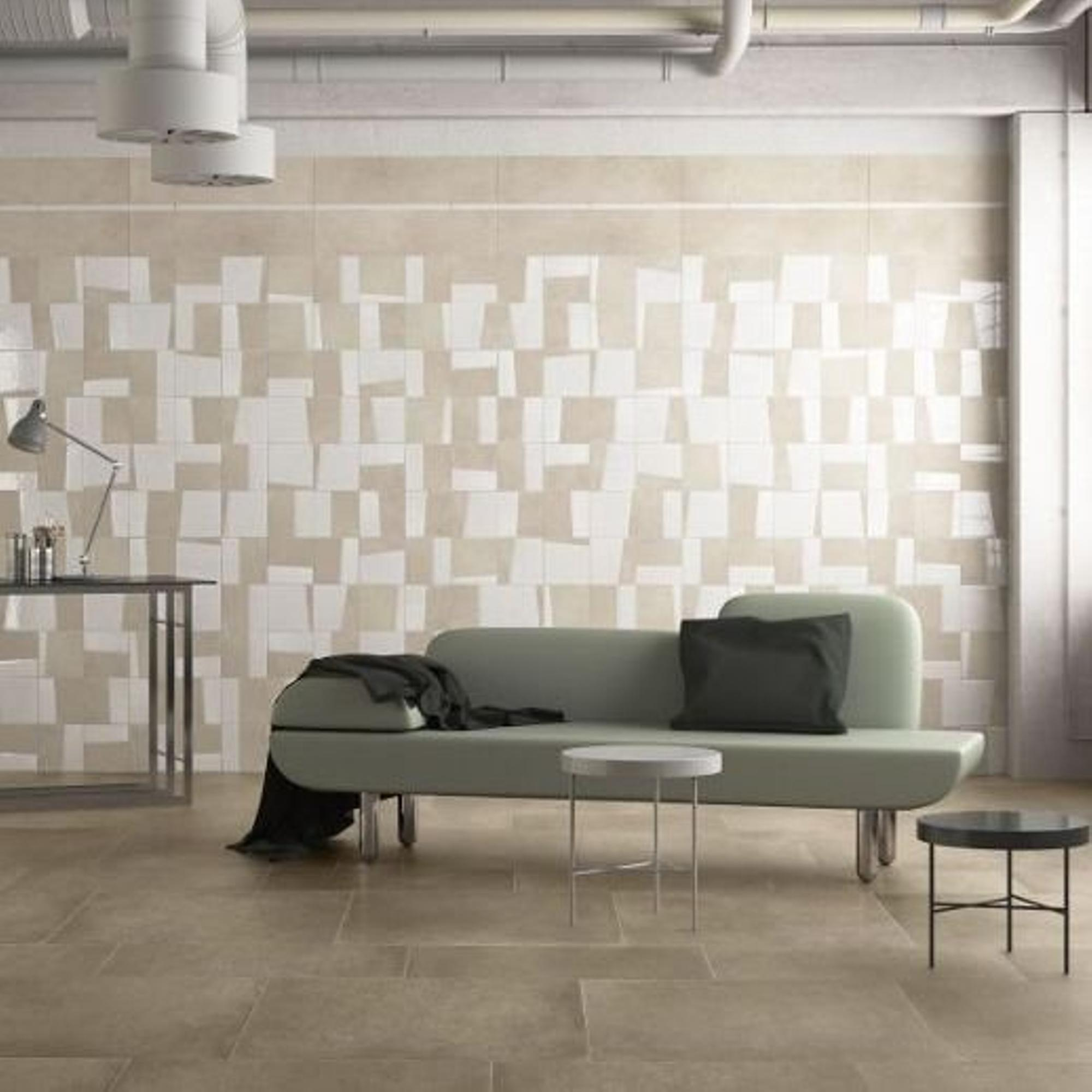 Deze tegel straalt tijdloosheid uit door zijn klassieke kleurencombinatie en elegante uitstraling. Het ontwerp past moeiteloos bij diverse interieurstijlen en blijft jarenlang een stijlvolle toevoeging aan elke ruimte. De neutrale ecru kleur met een vleugje taupe zorgt voor een rustgevende en tijdloze sfeer, waardoor deze tegel een duurzame keuze is voor elke woning.