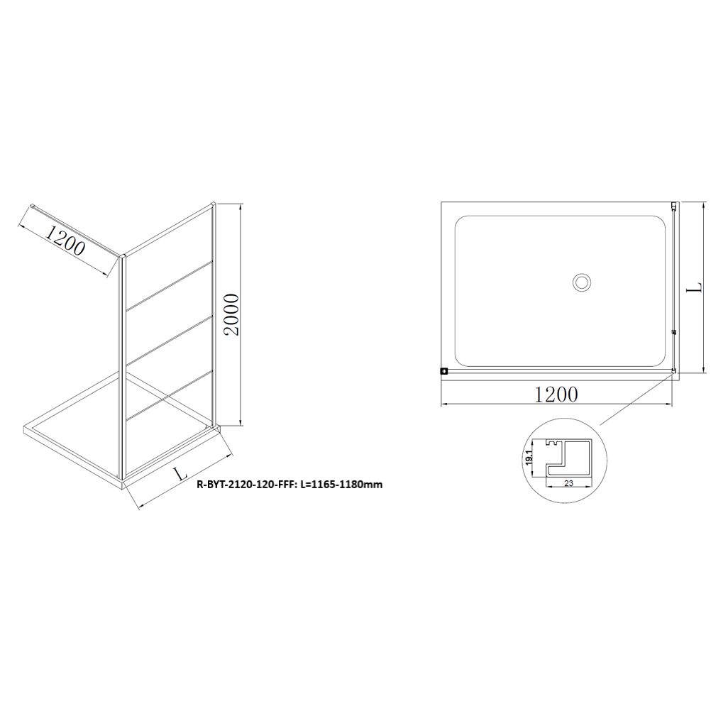 Aqua Vista inloopdouche/zijwand 120x200cm 8mm helder nano coating glas met frame geborsteld messing