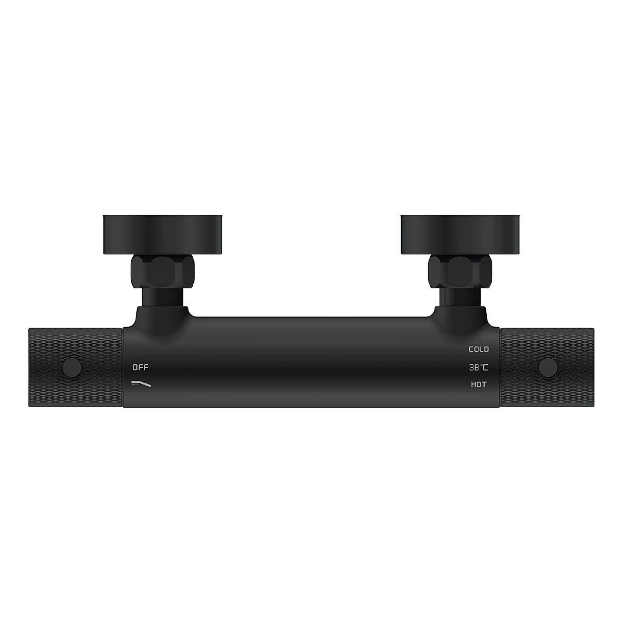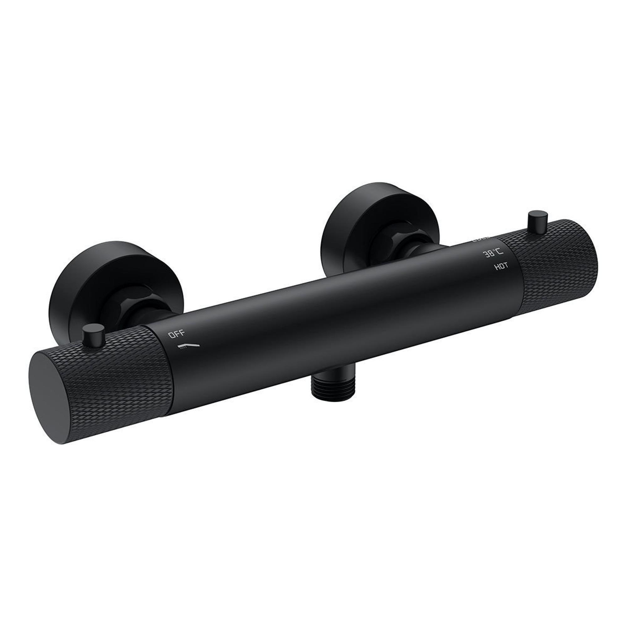 Wiesbaden Ribbd thermostatische douchemengkraan hartafstand 15 cm mat zwart