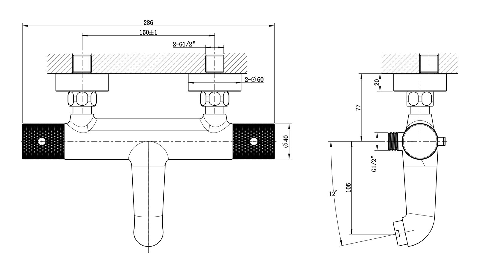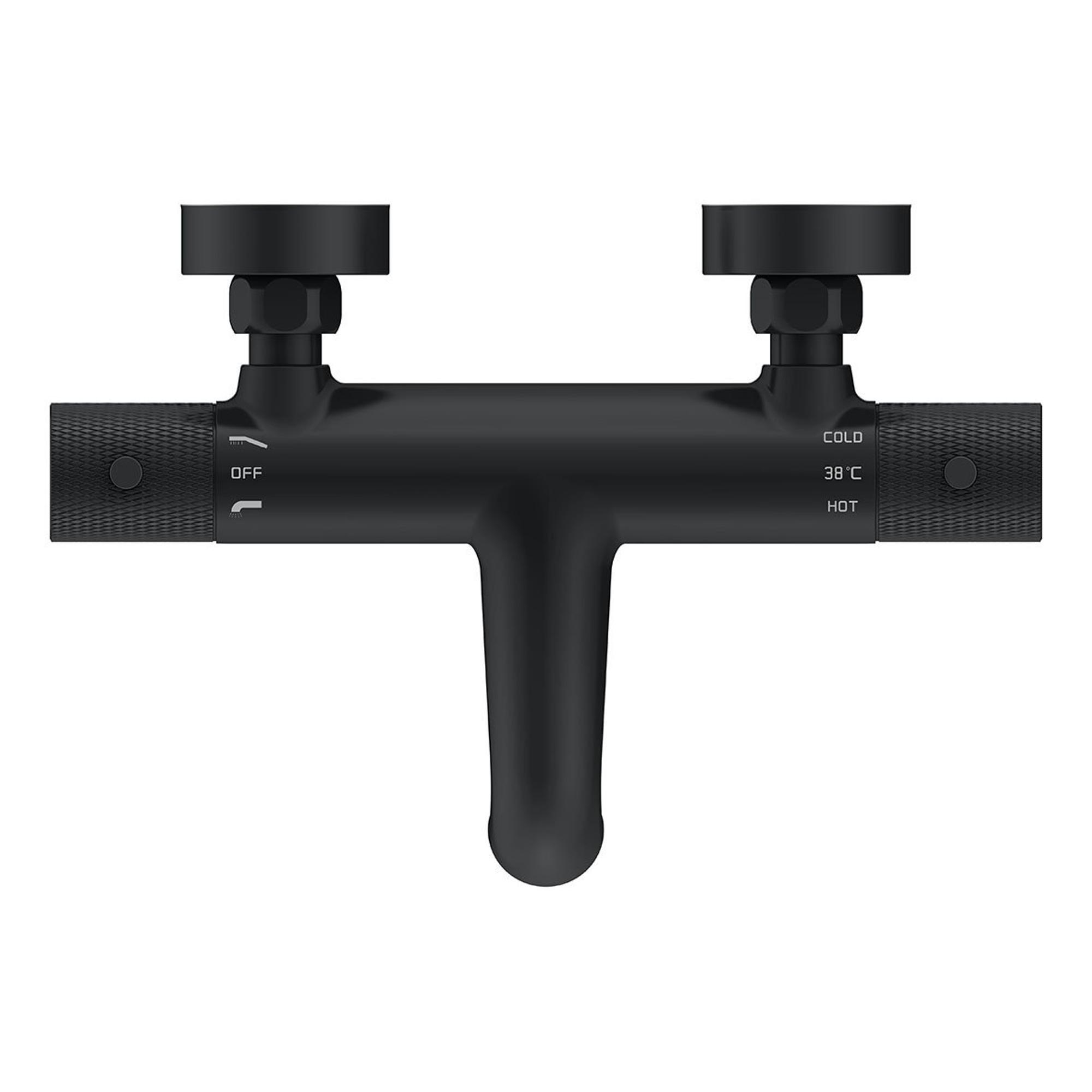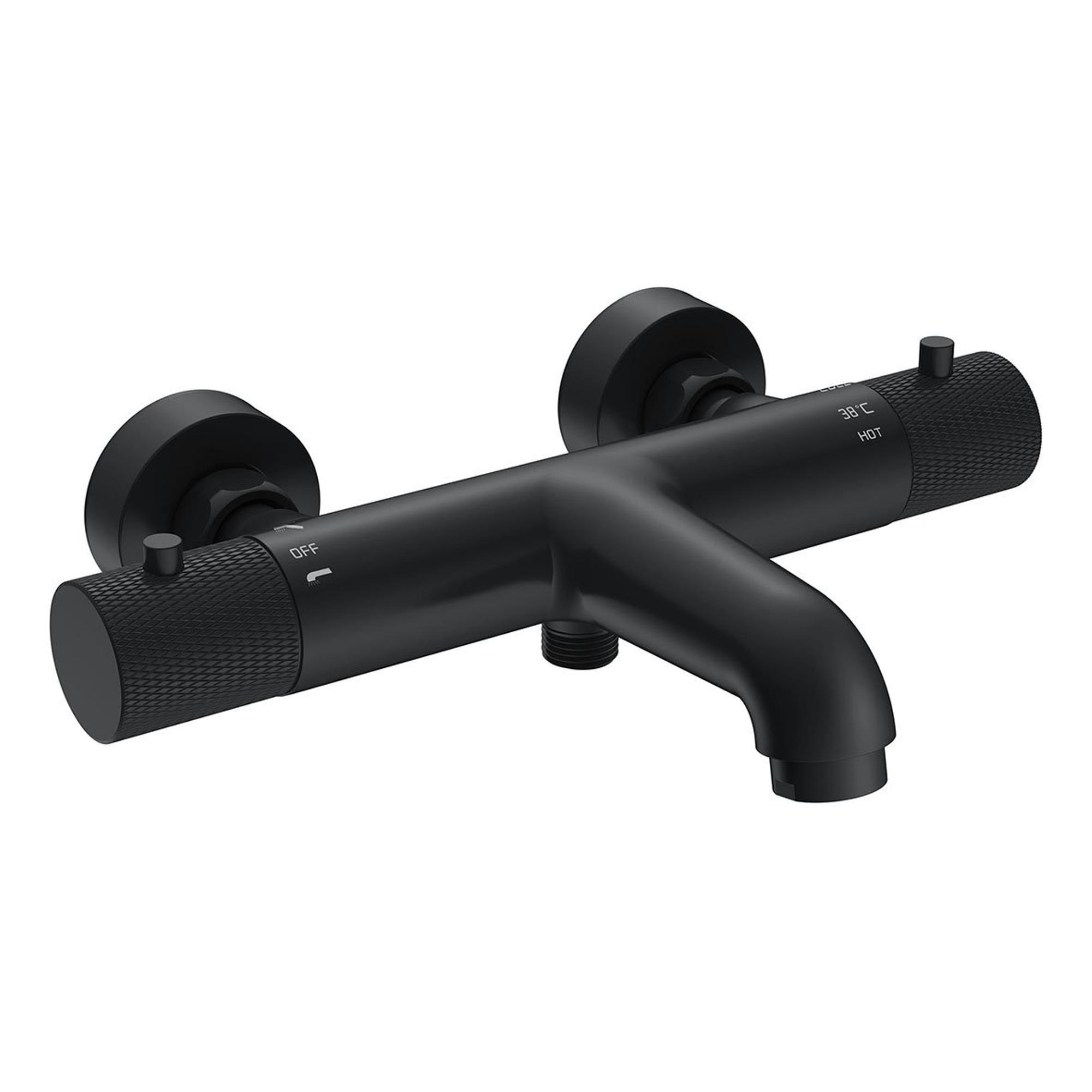Wiesbaden Ribbd thermostatische badmengkraan hartafstand 15 cm mat zwart