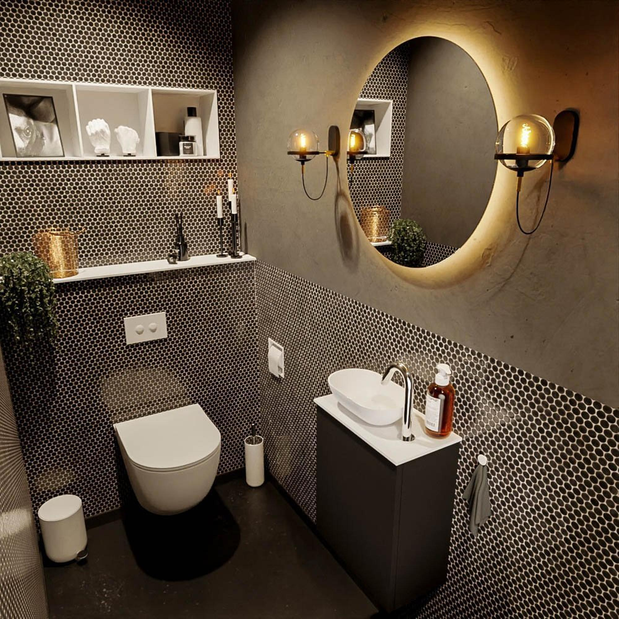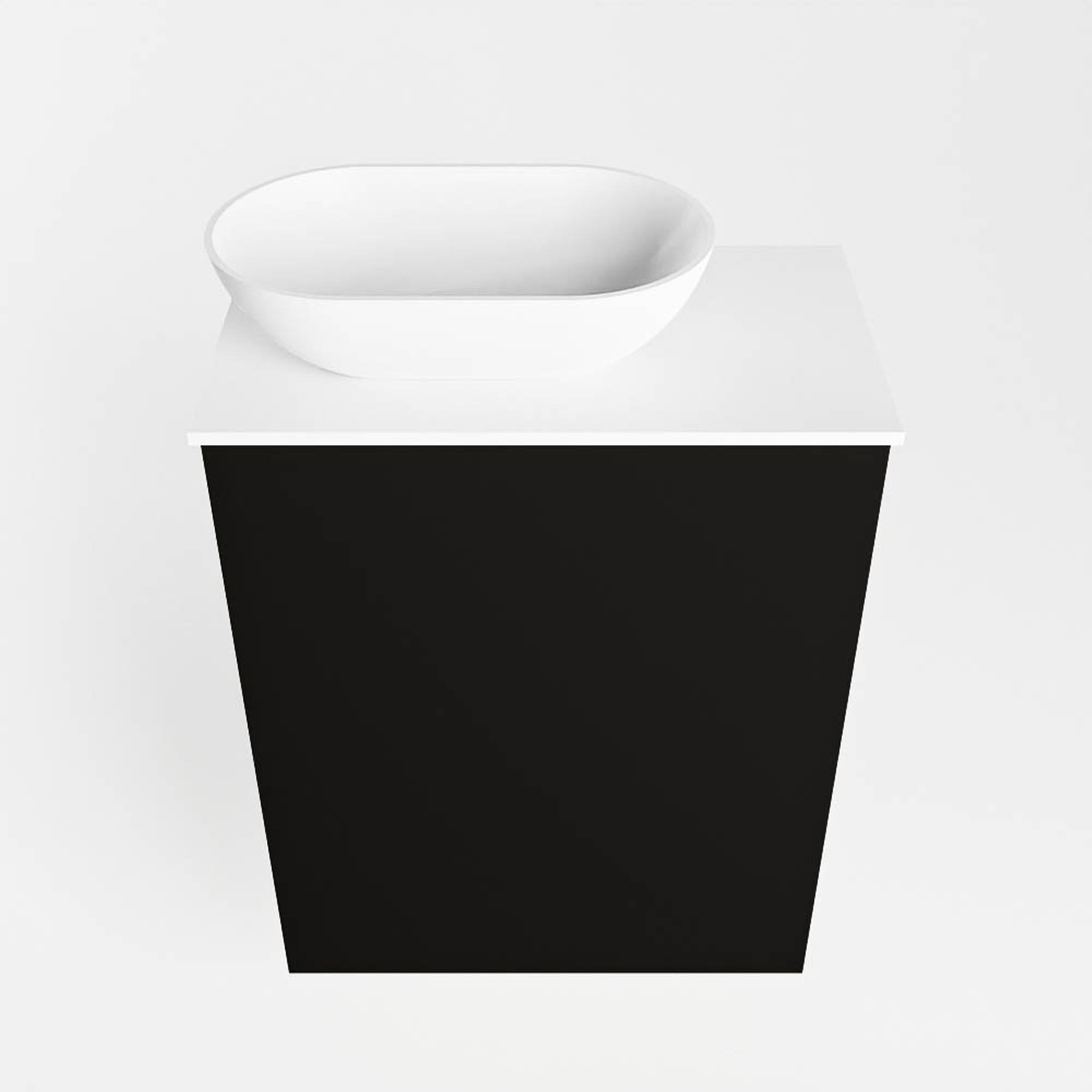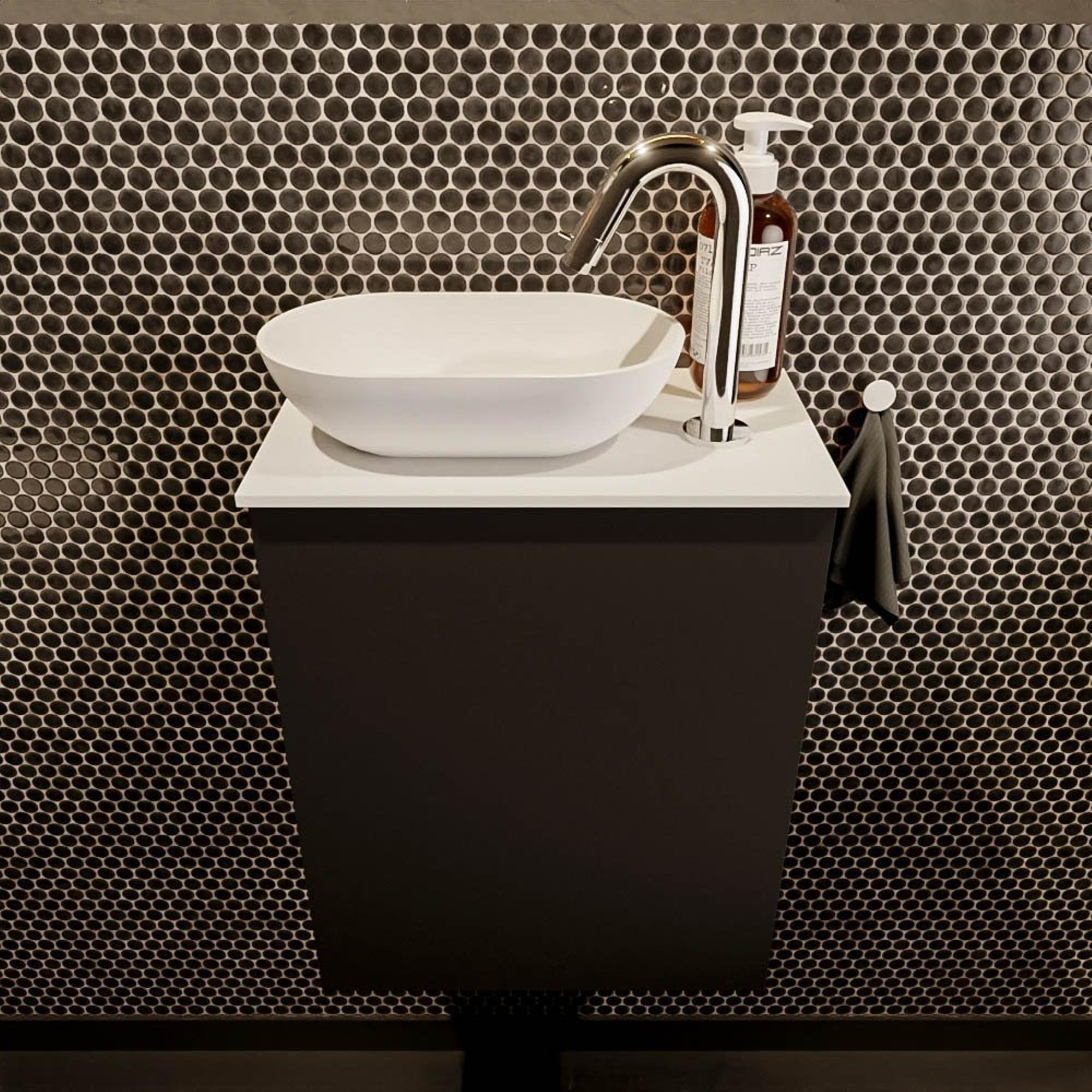 Mondiaz Fowy Toiletmeubel - 40x50x23cm - urban mat - 1 kraangat - wasbak links - 1 deur - solid surface - blad MDF - wasbak: Wit / Zwart