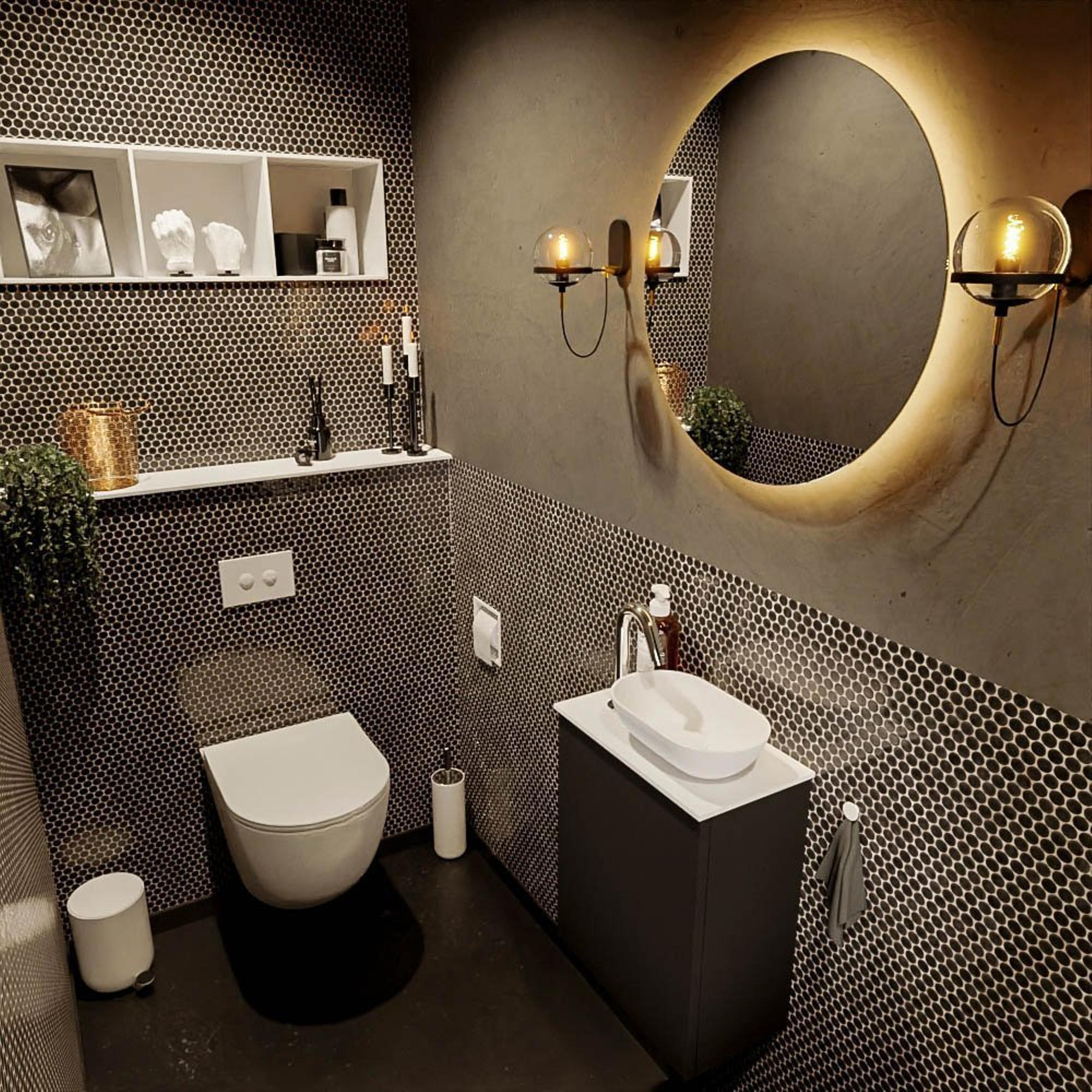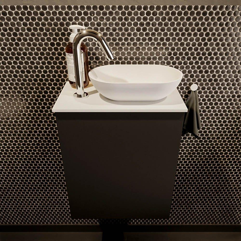 Mondiaz Fowy Toiletmeubel - 40x50x23cm - urban mat - 1 kraangat - wasbak rechts - 1 deur - solid surface - blad MDF - wasbak: wit
