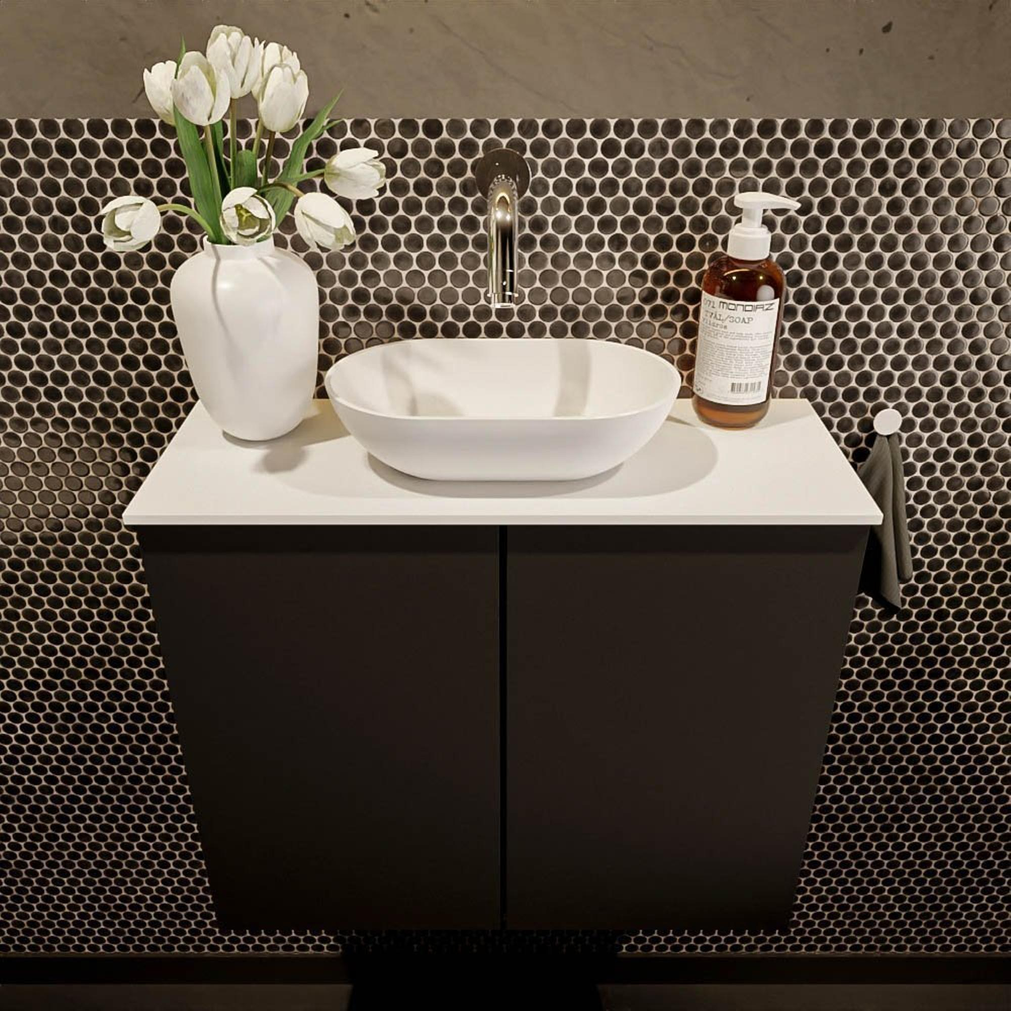 Mondiaz Fowy Toiletmeubel - 60x50x23cm - urban mat - 0 kraangaten - wasbak midden - 2 deuren - solid surface - blad MDF - wasbak: wit