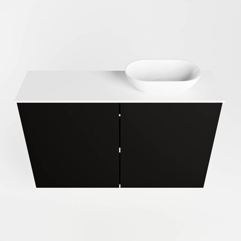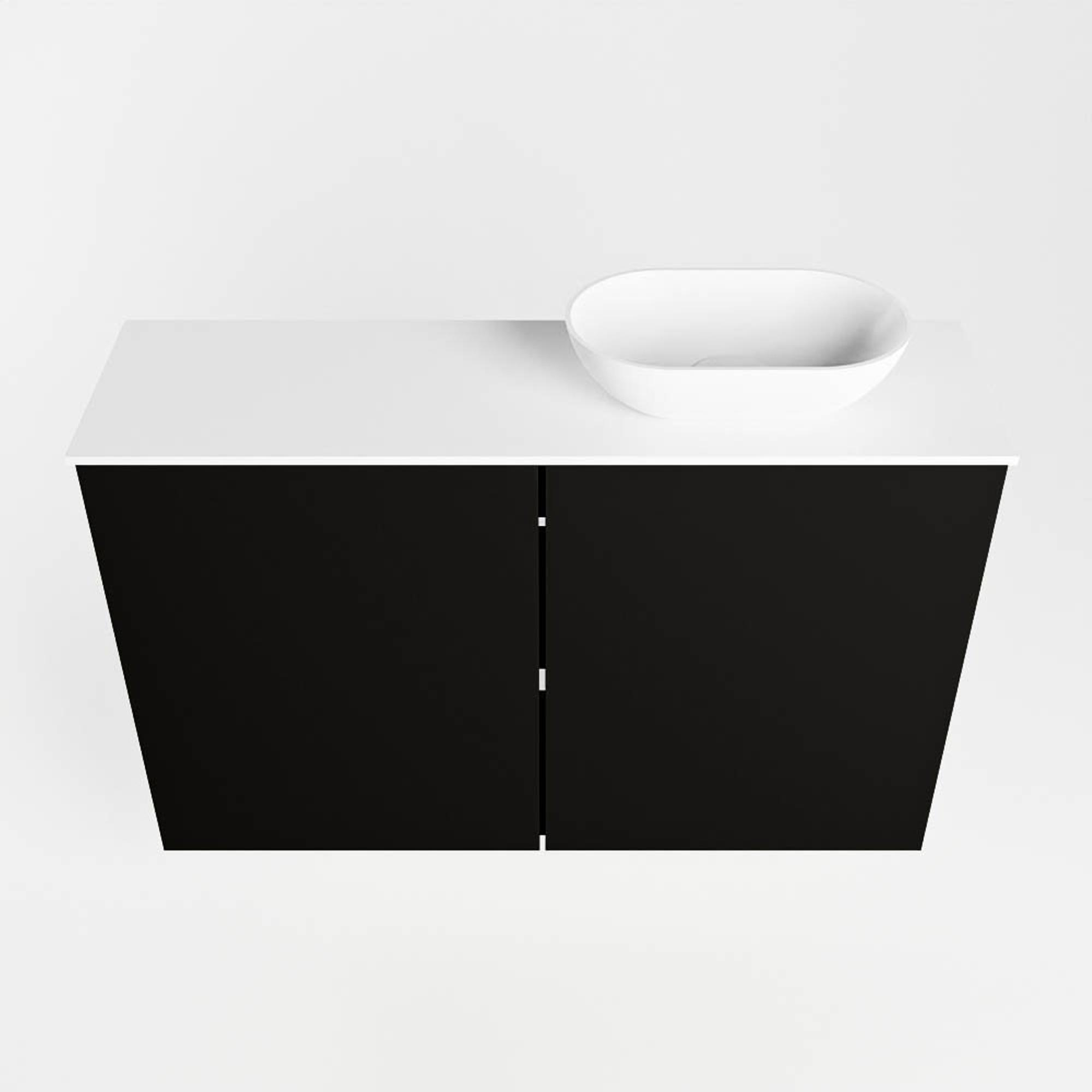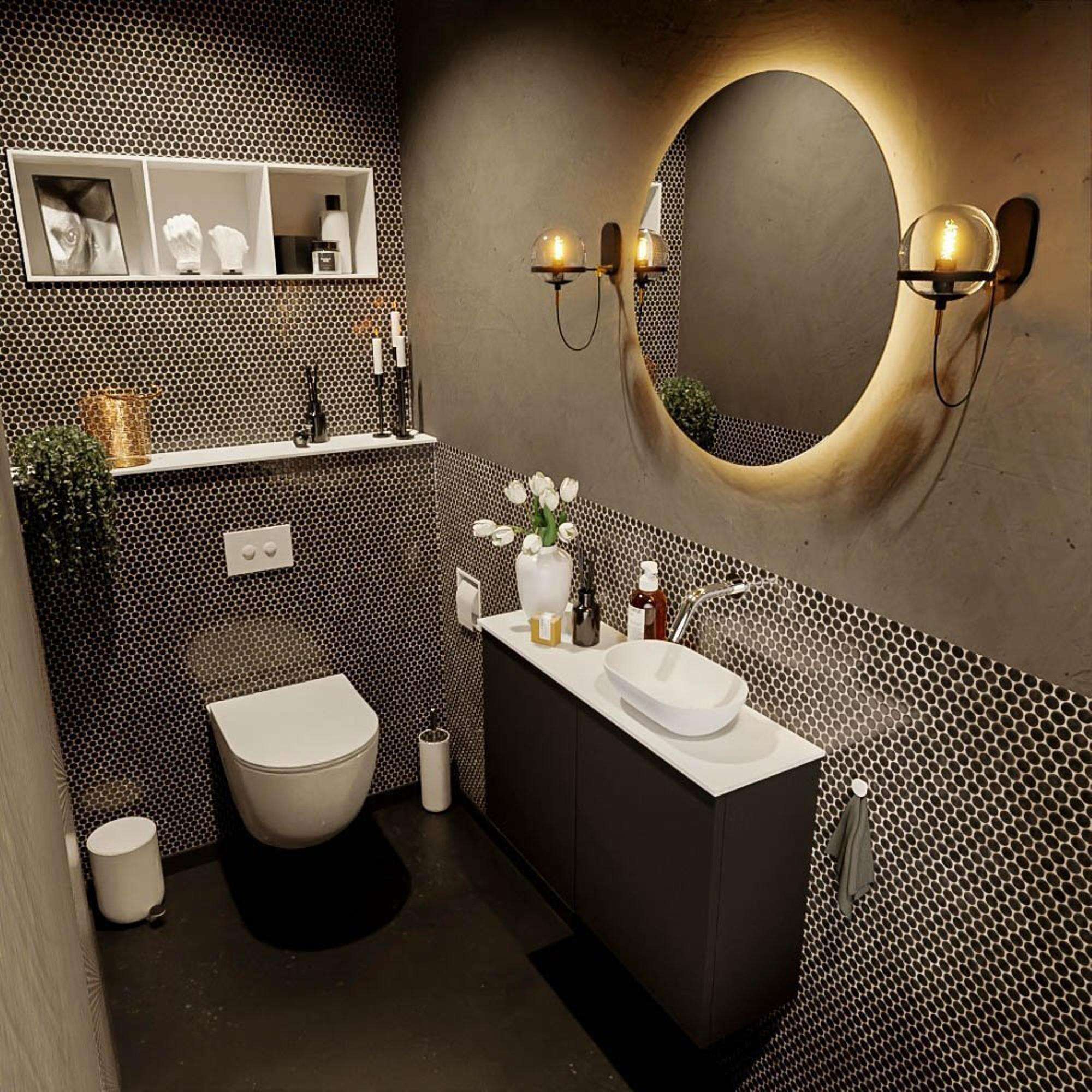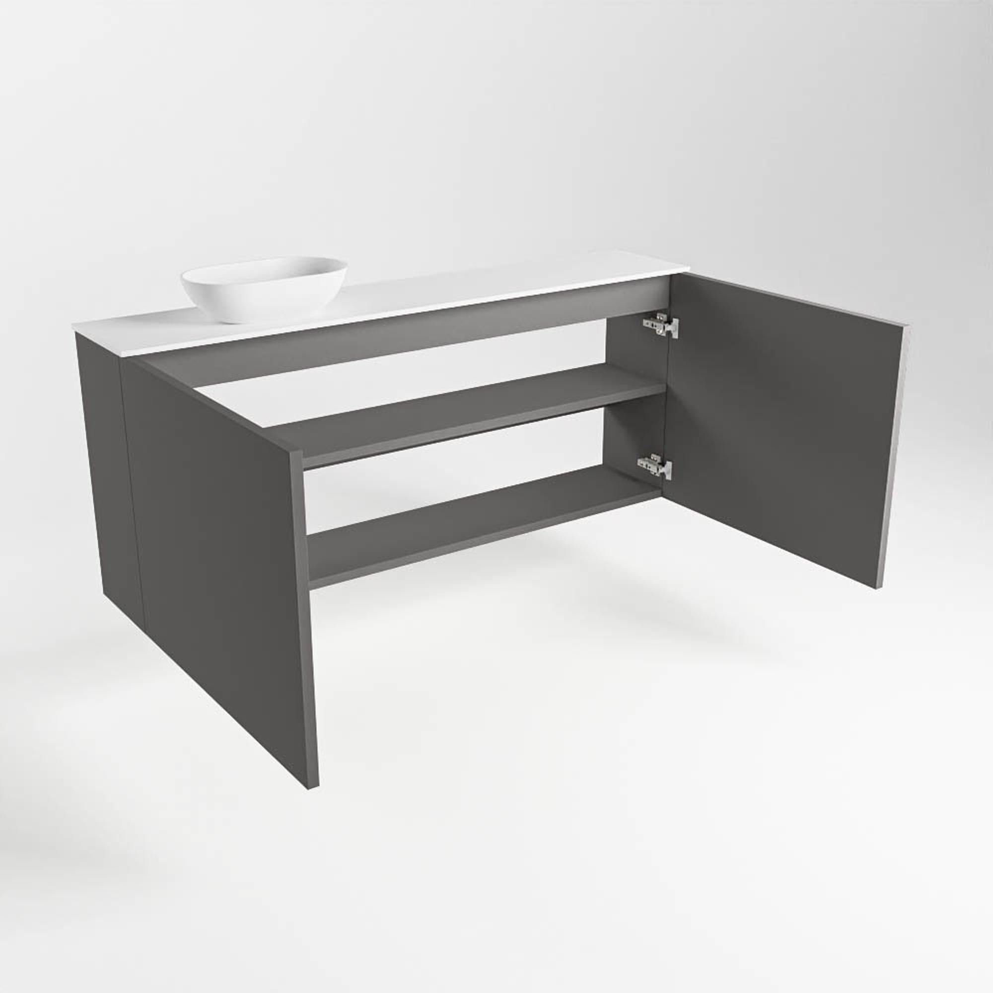 Mondiaz Fowy Toiletmeubel - 80x50x23cm - urban mat - 0 kraangaten - wasbak rechts - 2 deuren - solid surface - blad MDF - wasbak: wit