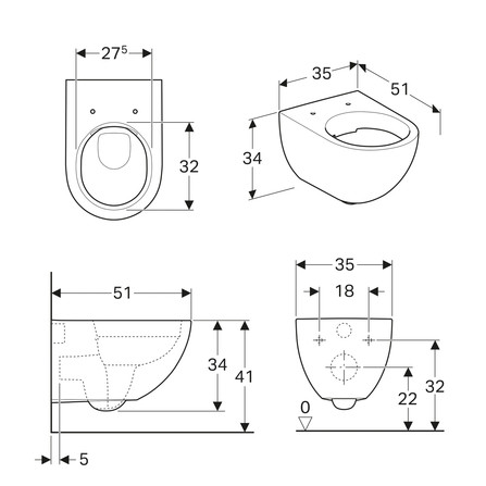 Het wandcloset heeft een diepte (sprong) van 51 cm en is geschikt voor spoelingen met 4,5 of 6 liter water.
