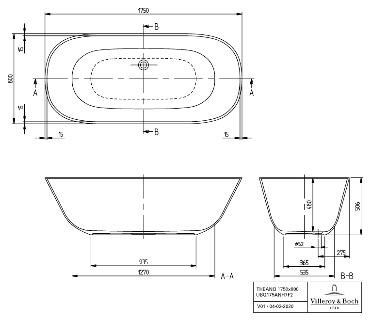 Villeroy & Boch Theano vrijstaand duobad - 175x80cm - kunststof quaryl - ovaal - mat grijs