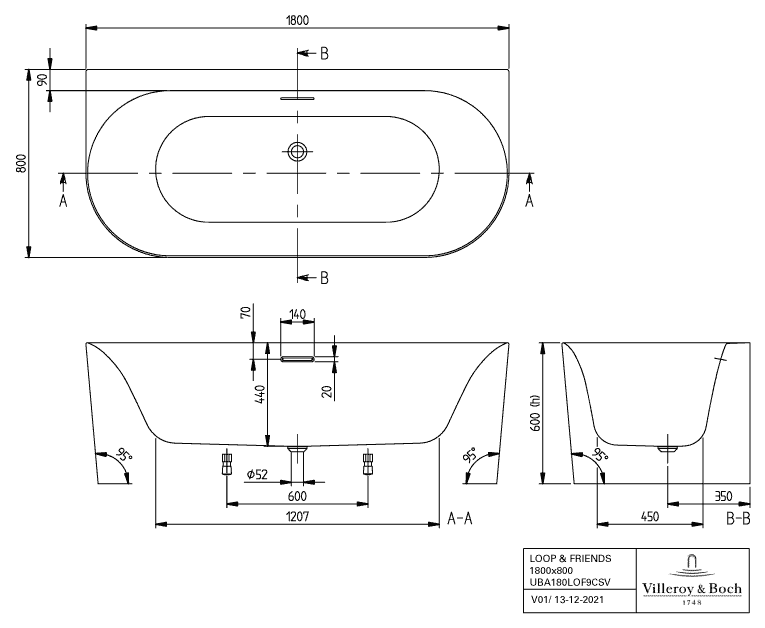 Villeroy & Boch Loop & Friends Half vrijstaand bad
