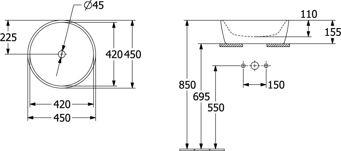 Villeroy & Boch Architectura waskom 45x45x15.5cm Rond met overloopgat Wit Alpin glans Ceramic