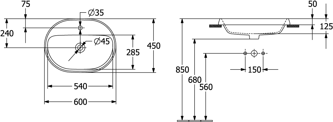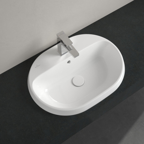 Villeroy & Boch Architectura inbouwwastafel 60x45x17cm Ovaal 1 kraangat met overloopgat Wit Alpin glans Ceramic