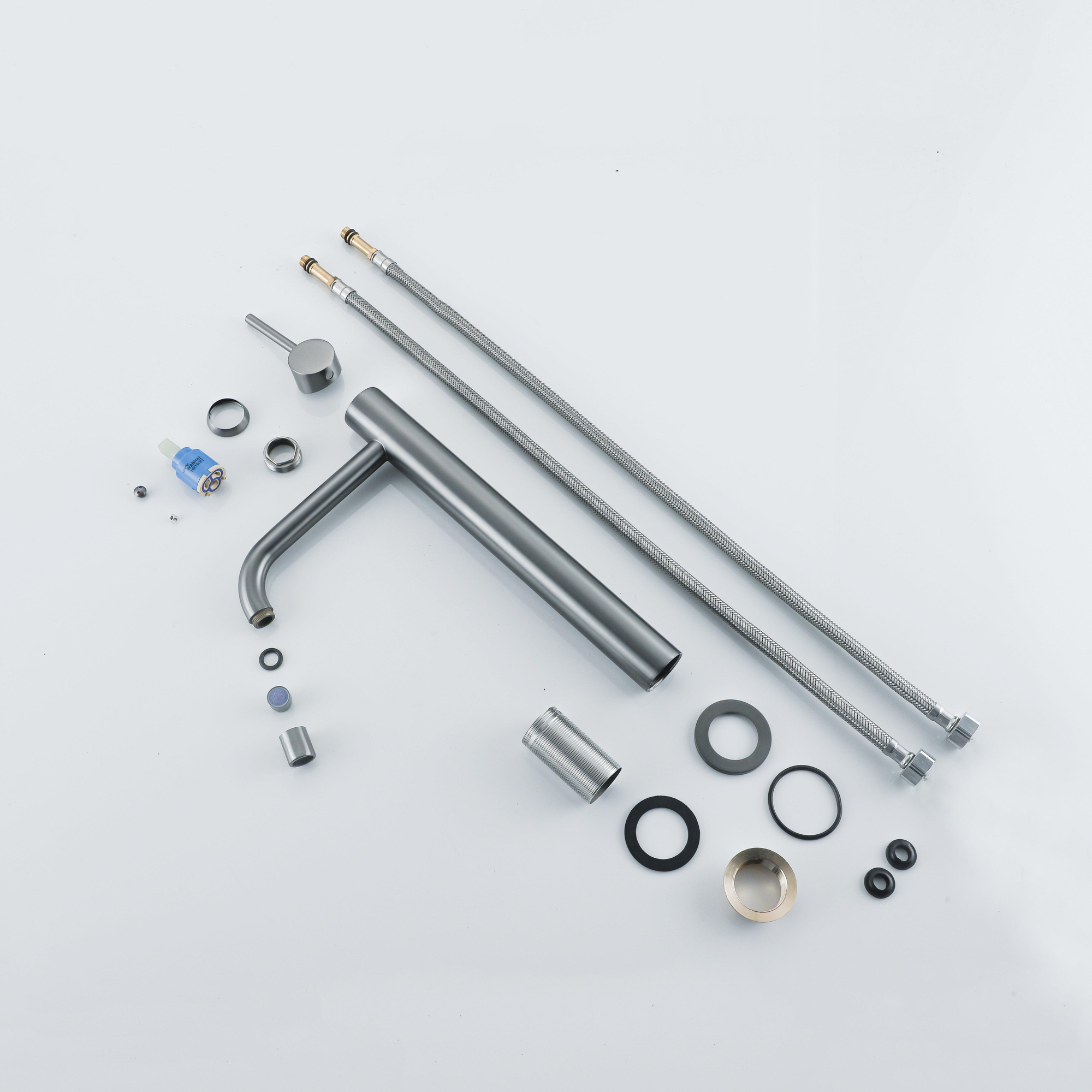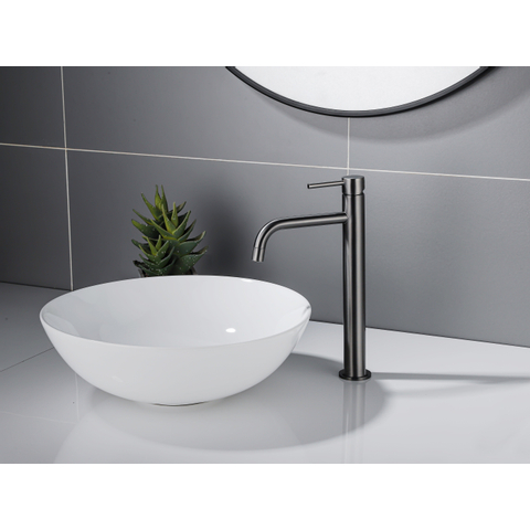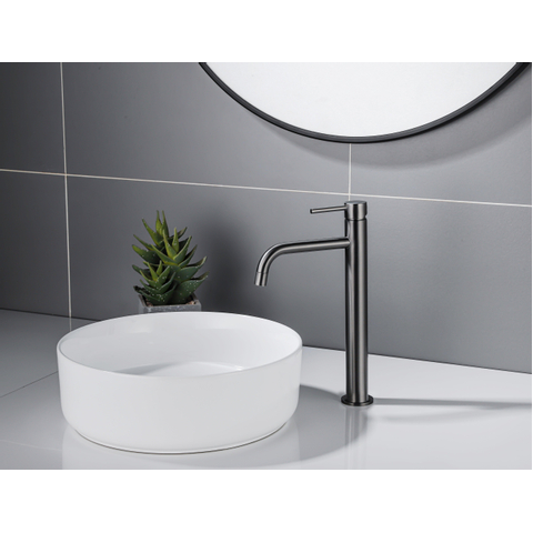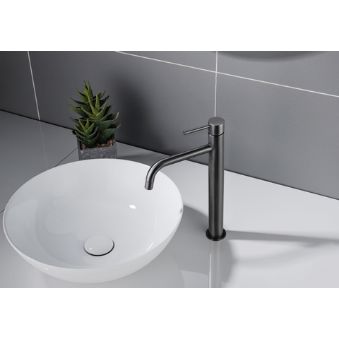 Fortifura Calvi Slim Wastafelkraan - 32cm - verhoogd - opbouw - Geborsteld Gunmetal PVD