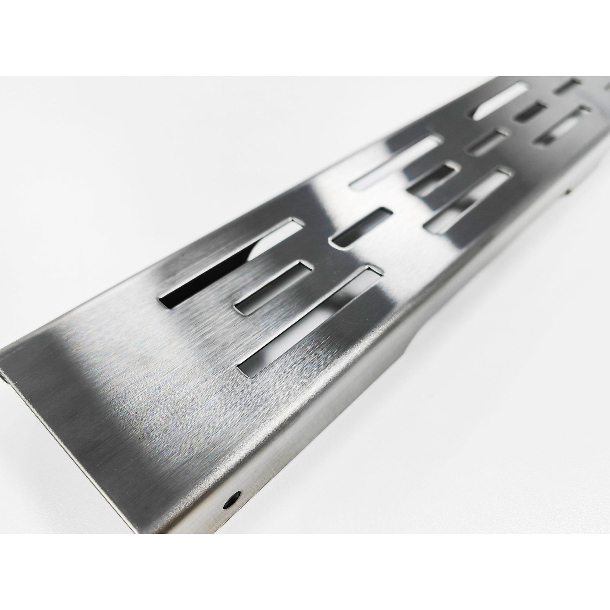 De Fortifura douchegoot is geheel gemaakt van geborsteld RVS met een RVS finish. Het rooster heeft een gunmetal gekleurde afwerking. Deze douchegoot wordt compleet met sleufrooster geleverd. Zo kun je de douchegoot meteen installeren. Met de verstelbare voetjes kun je de douchegoot nog beter waterpas plaatsen.