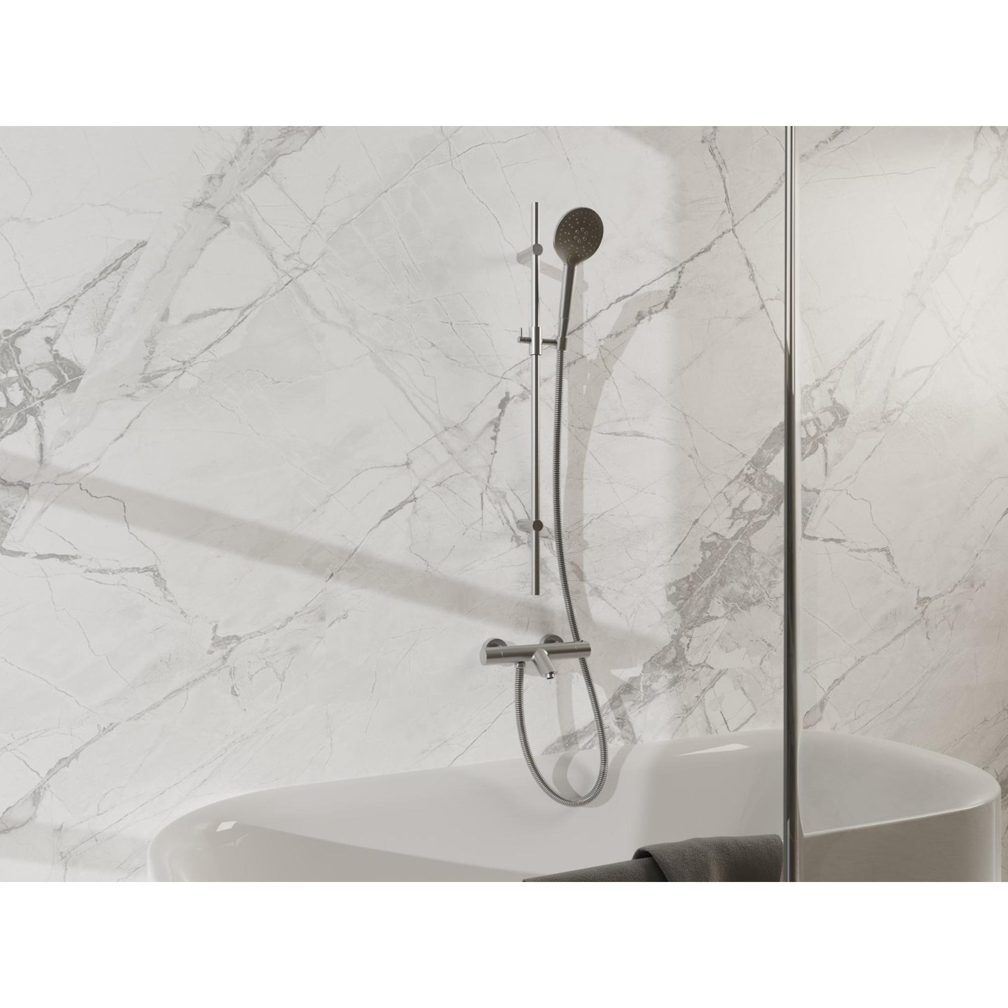 De Fortifura Calvi Glijstang onderscheidt zich door zijn esthetische aantrekkingskracht en oog voor detail. Het geborsteld roestvrijstalen PVD-afwerking geeft deze glijstang een luxe uitstraling die moeiteloos past bij elke badkamerinrichting. De 90cm lengte en het verstelbare glijstuk zorgen voor een praktische en veelzijdige oplossing voor het douchen, waardoor comfort en gemak worden gegarandeerd.