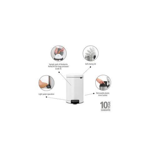 Brabantia NewIcon Pedaalemmer - 12 liter - kunststof binnenemmer - wit