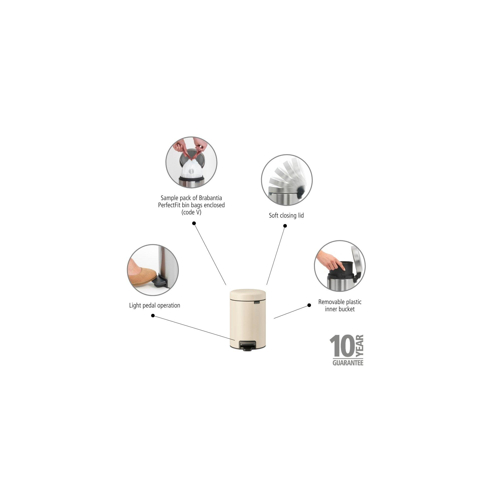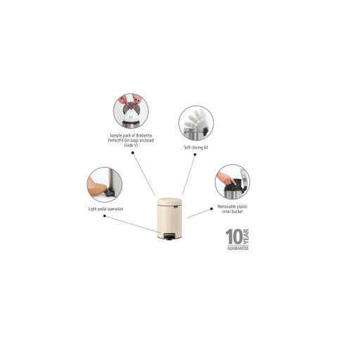 Brabantia NewIcon Pedaalemmer - 3 liter - kunststof binnenemmer - soft beige