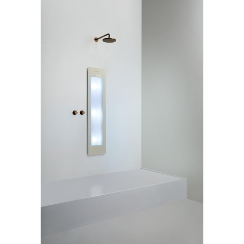 Inbouw douchepaneelDit douchepaneel van Sunshower is ontworpen om in de muur te bouwen. Hierdoor kun je de Sunshower stijlvol laten integreren in jouw douche en steekt hij niet uit. Het nadeel hiervan is wel dat de installatie een stuk lastiger is. Je moet rekening houden met een afstand van 45 cm tot het hart van de douchekop.