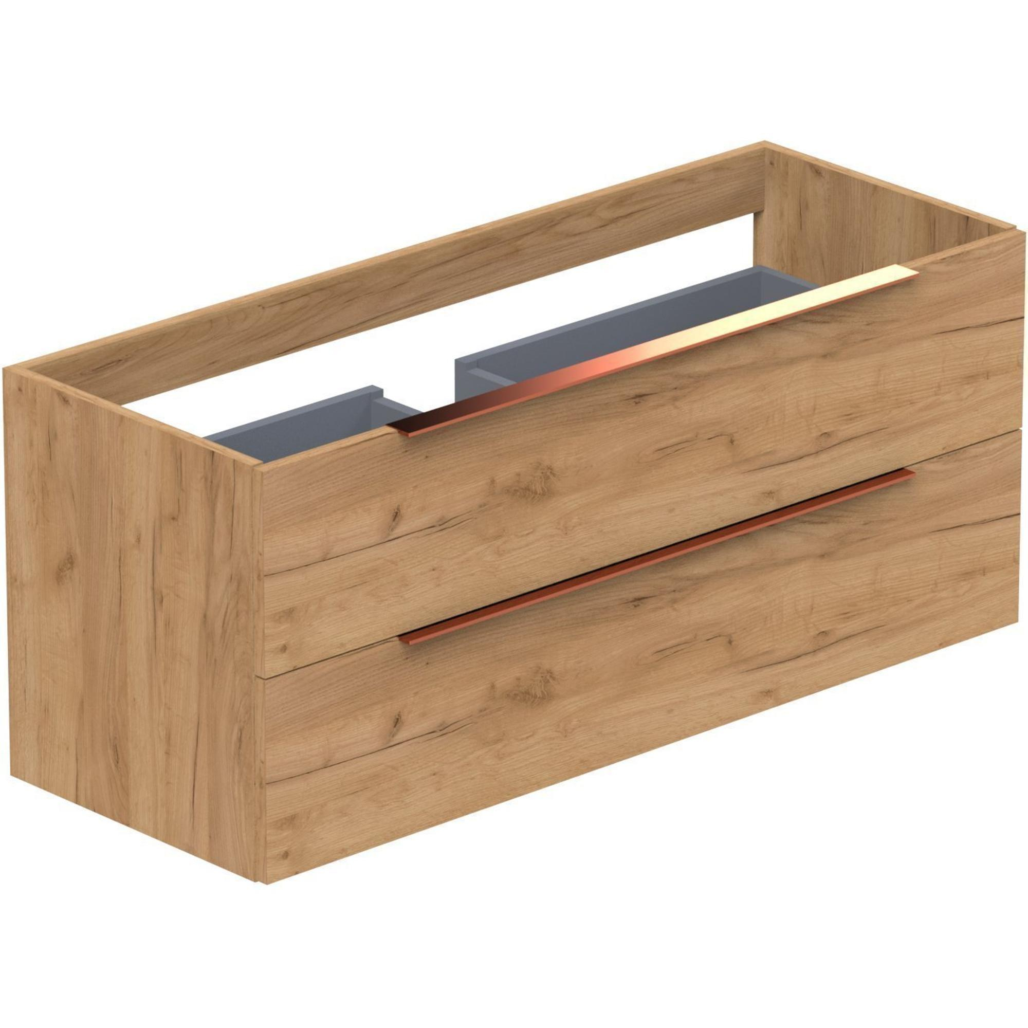 Thebalux Type onderbouwkast 120x45x50cm 1 uitsparing opbouwgreep koper 2 softclose lades standaard greep MDF/spaanderplaat zambia black