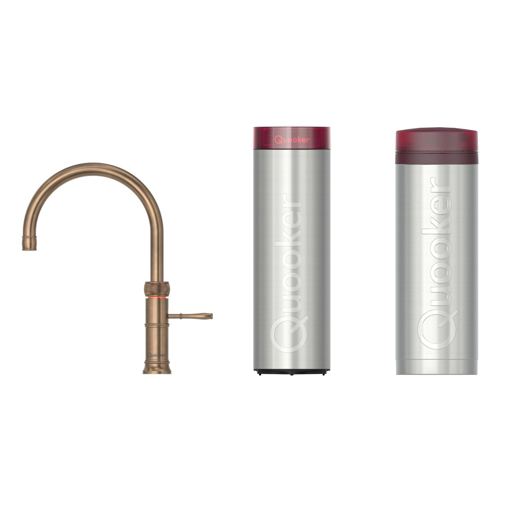 Quooker Classic Fusion Round kokendwaterkraan - draaibare uitloop - PRO3 incl. Cube reservoir - Warm / kokend / bruisend / gefilterd water - Messing patina