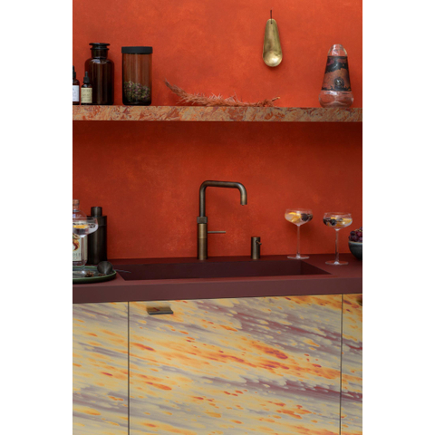 Quooker Classic Fusion Square kokendwaterkraan - draaibare uitloop - Combi incl. Cube reservoir - Warm / kokend / bruisend / gefilterd water - Messing patina glans