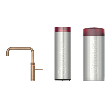 Quooker Fusion Square kokendwaterkraan - draaibare uitloop - Combi incl. Cube reservoir - Warm / kokend / bruisend / gefilterd water - Messing patina