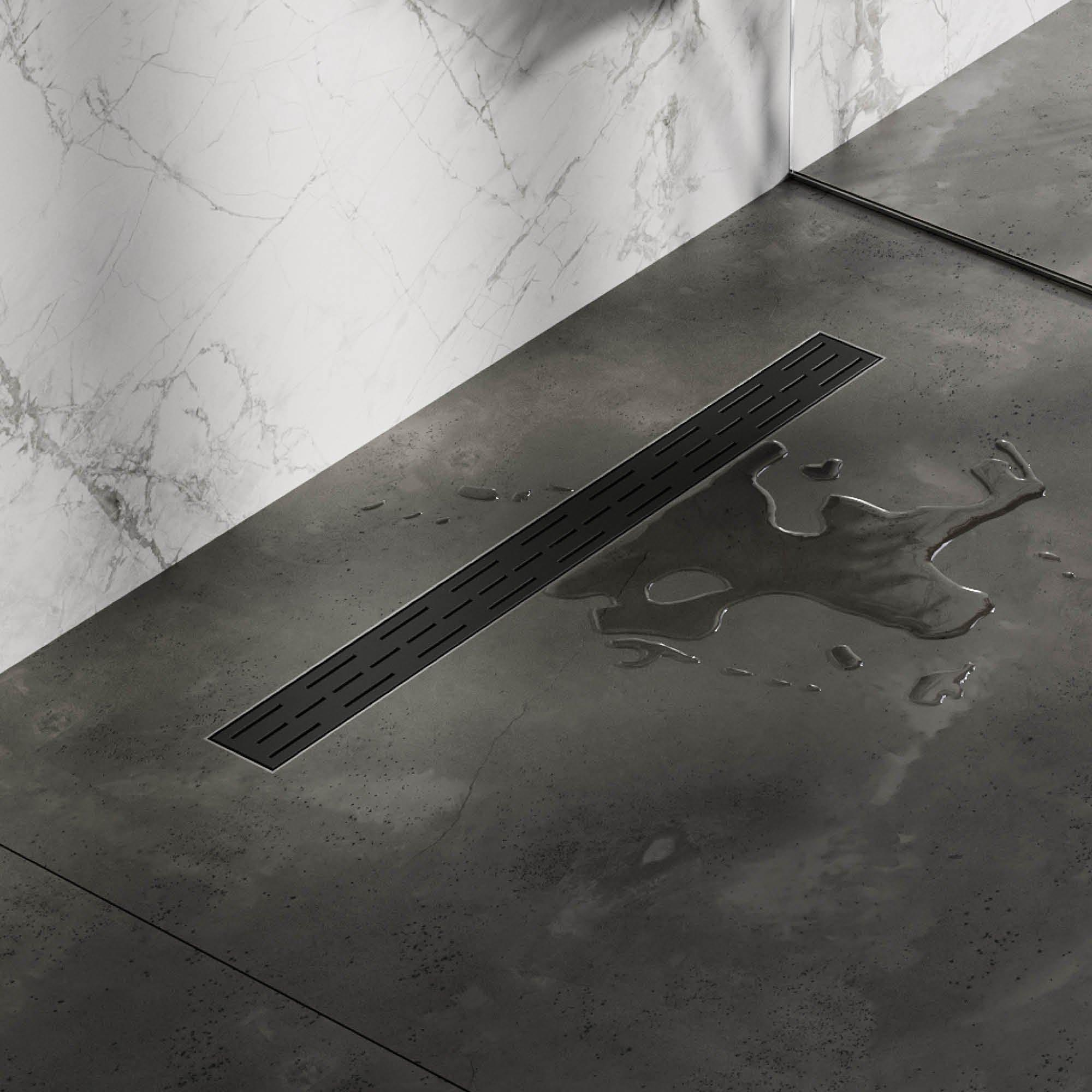 Brauer Douchegoot - 80x7.5cm - vloerflens - RVS - zwart