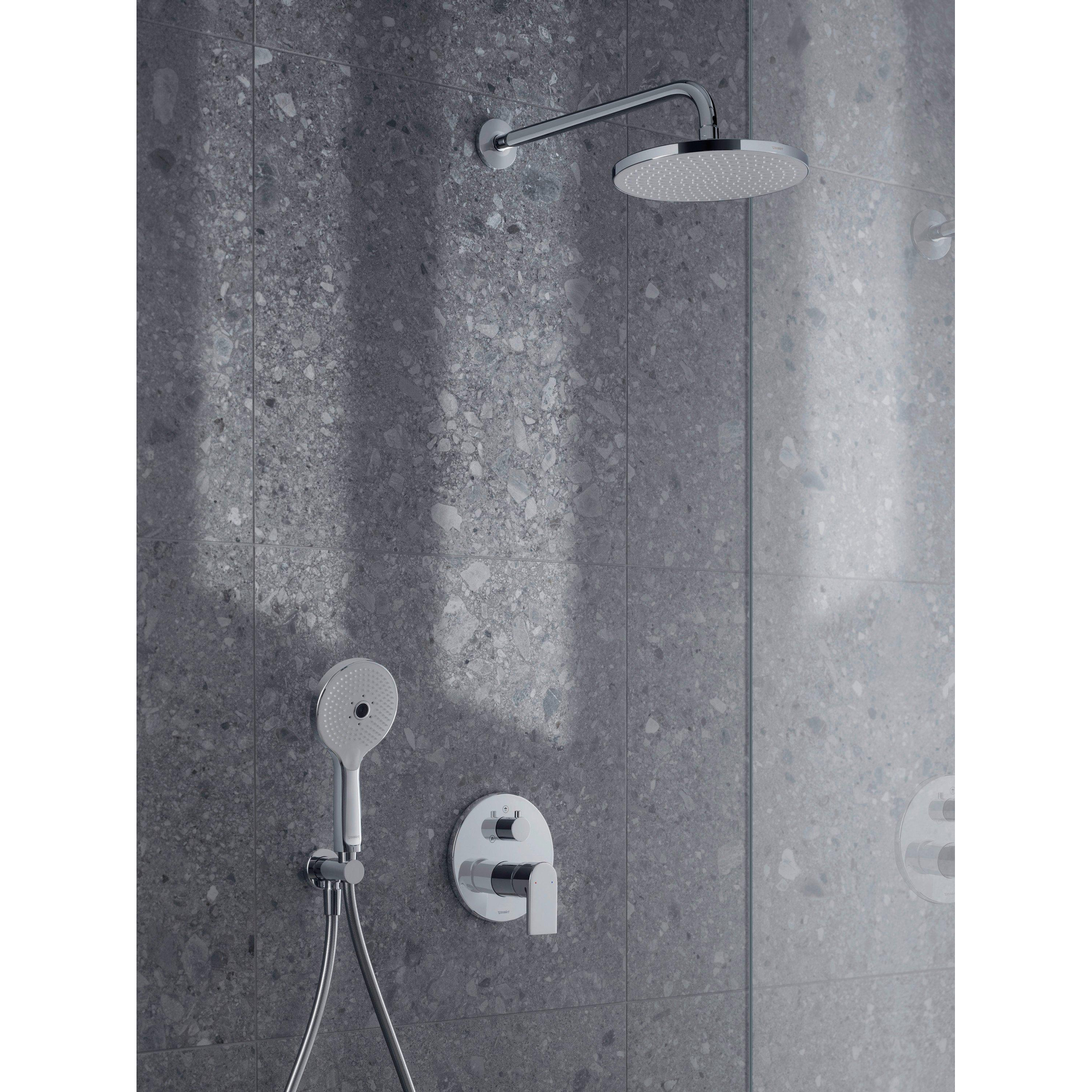 Maak je douche compleetHet rechtlijnige, puristische design van deze douchemengkraan wordt in de gehele serie voortgezet. De chromen variant is oneindig te combineren en past daardoor perfect bij elke badkamerstijl. Maak je douche compleet met de bijpassende handdouches, douchekoppen en staafhanddouches in verschillende maten en designvarianten!