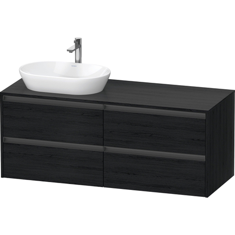 Duravit Ketho 2 wastafelonderbouwkast incl. consoleplaat met 4 laden voor waskom links 140x55x56.8cm met handgrepen antraciet eiken zwart mat