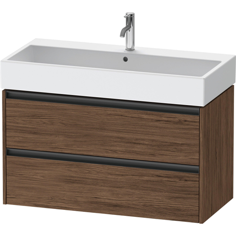 Duravit Ketho 2 wastafelonderbouwkast met 2 laden 98.4x46x54.9cm met grepen antraciet donker noten mat