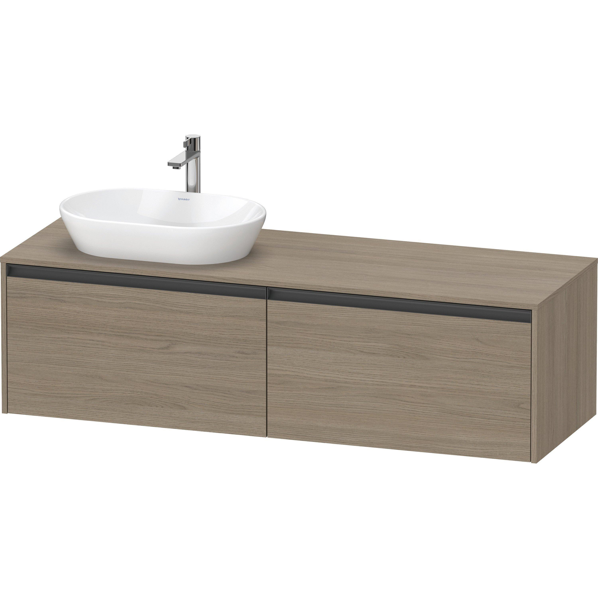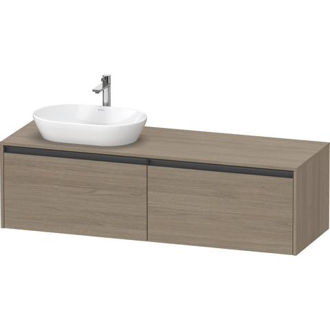 Duravit Ketho 2 wastafelonderbouwkast incl. consoleplaat met 2 laden voor waskom links 160x55x45.9cm met handgrepen antraciet eiken terra mat SW772043