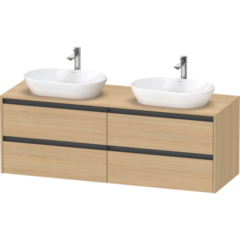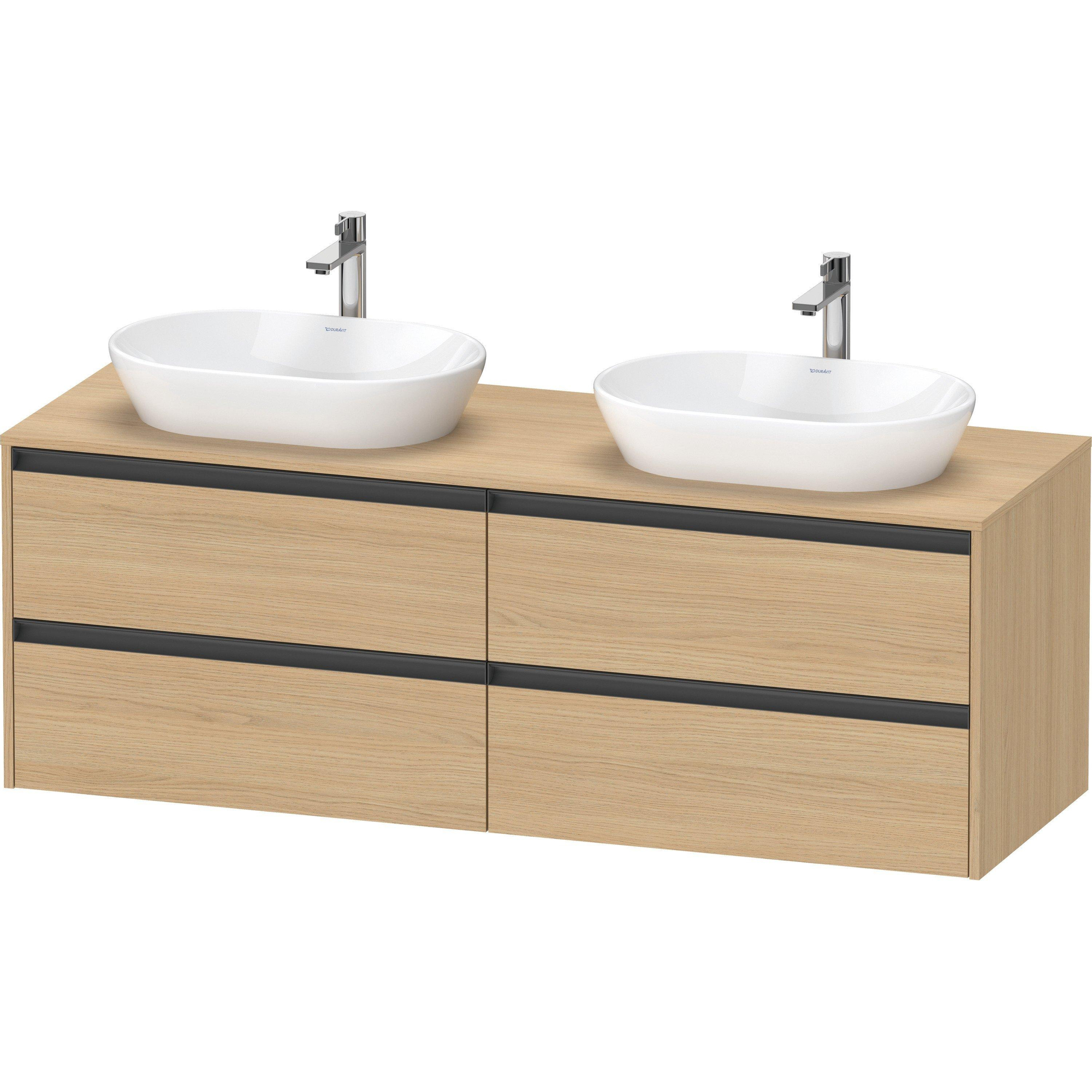 Duravit Ketho 2 wastafelonderbouwkast incl. consoleplaat met 4 laden voor dubbele waskommen 160x55x56.8cm met handgrepen antraciet natuur eiken mat