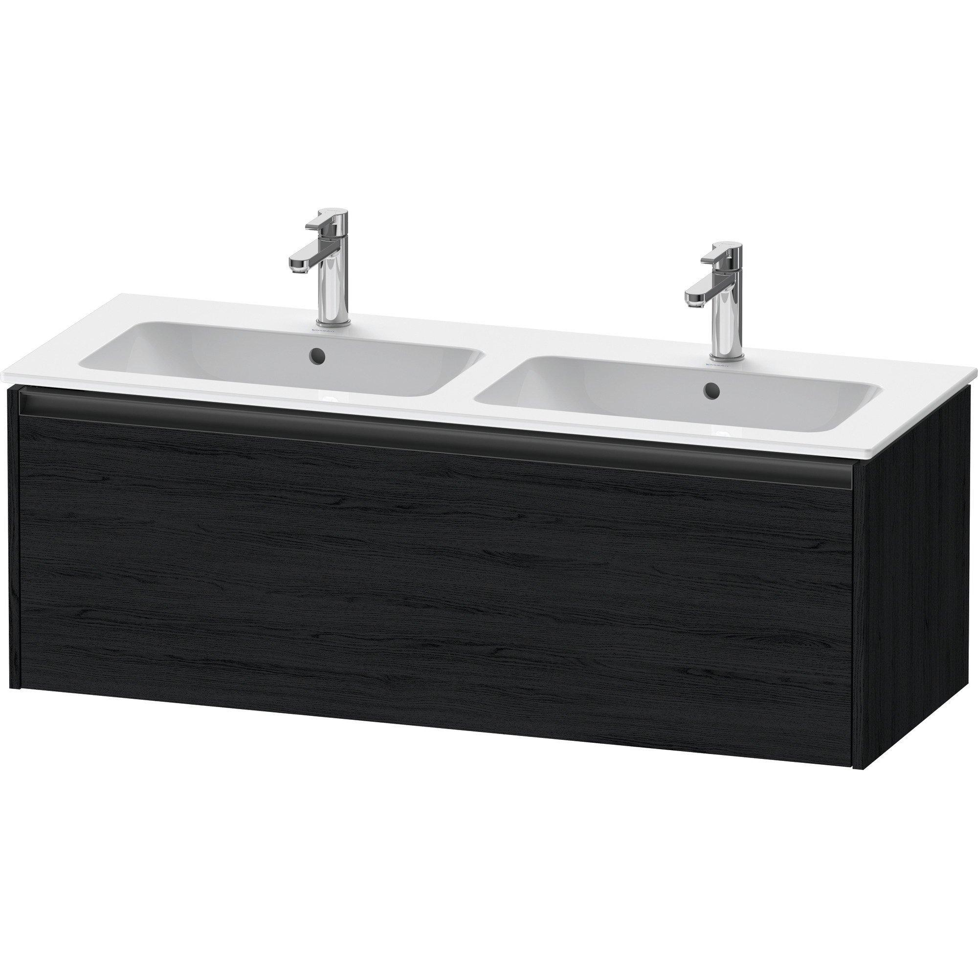 Duravit Ketho 2 wastafelonderbouwkast met 1 lade voor dubbele wastafel 128x48x44cm met greep antraciet eiken zwart mat SW772301