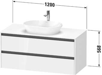 Duravit Ketho 2 wastafelonderbouwkast incl. consoleplaat met 2 laden 120x55x56.8cm met handgrepen antraciet hoogglans wit