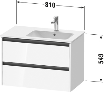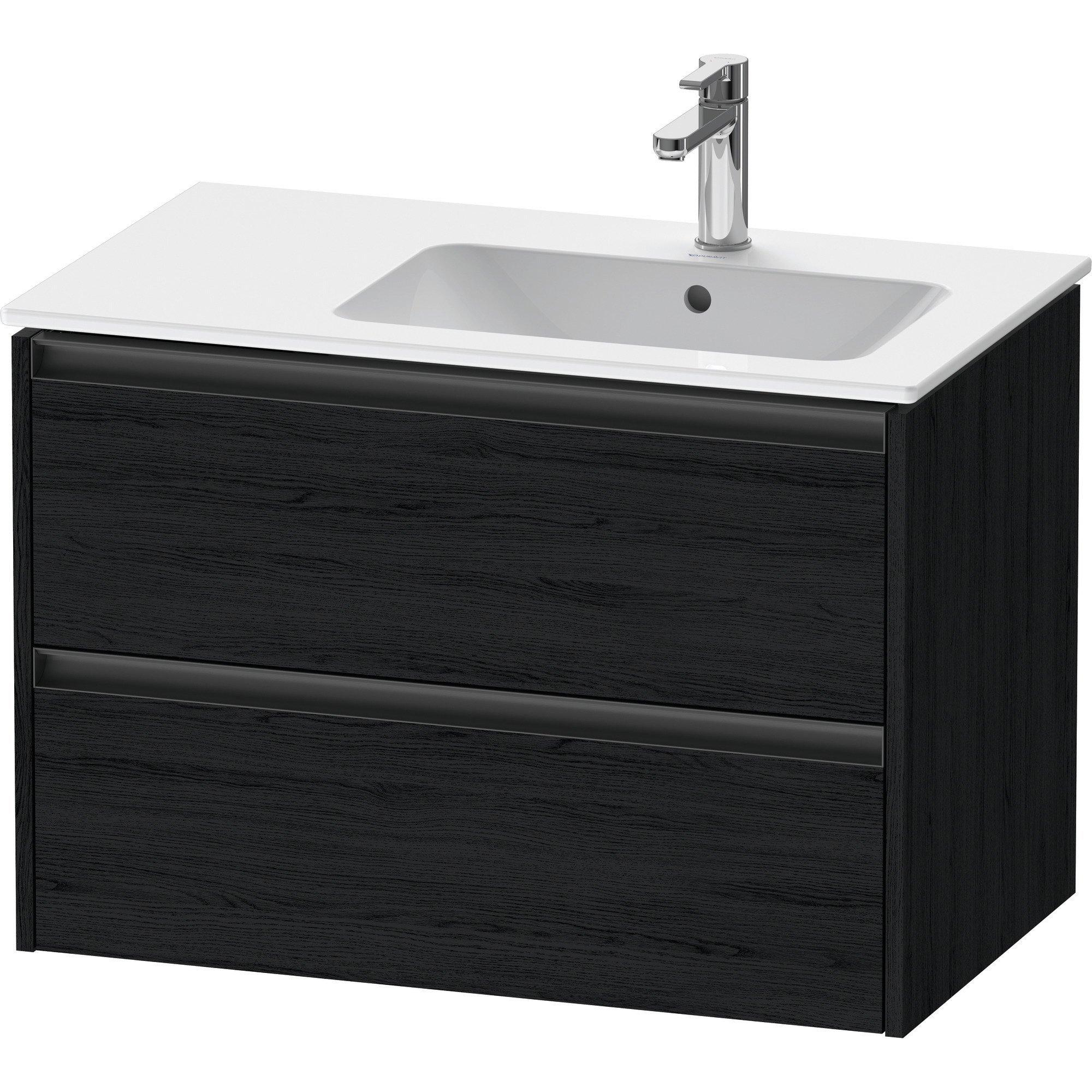 Duravit Ketho 2 wastafelonderbouwkast met 2 laden voor waskom rechts 81x48x54.9cm met grepen antraciet eiken zwart mat