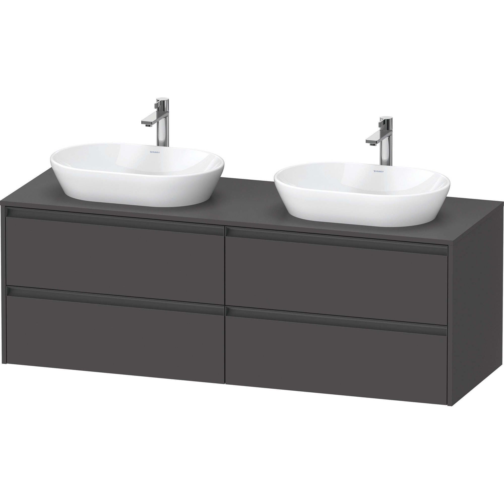Duravit Ketho 2 wastafelonderbouwkast incl. consoleplaat met 4 laden voor dubbele waskommen 160x55x56.8cm met handgrepen antraciet grafiet mat