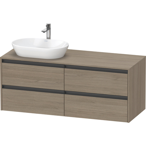 Duravit Ketho 2 wastafelonderbouwkast incl. consoleplaat met 4 laden voor waskom links 140x55x56.8cm met handgrepen antraciet eiken terra mat