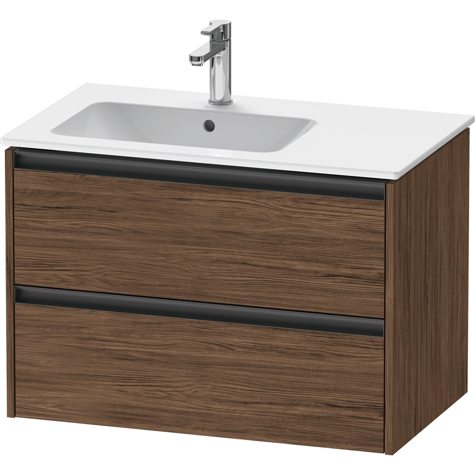 Duravit Ketho 2 wastafelonderbouwkast met 2 laden voor waskom links 81x48x54.9cm met grepen antraciet donker noten mat