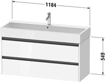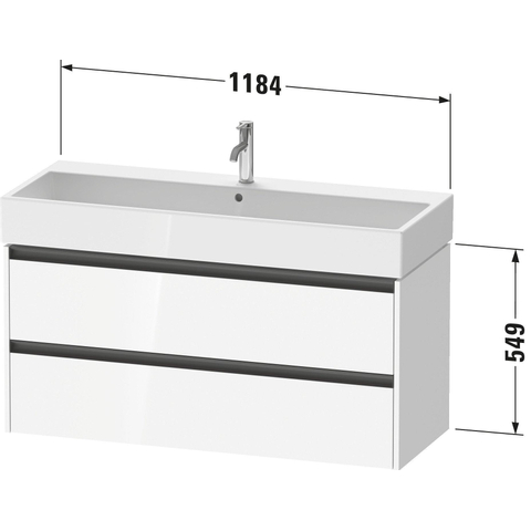 Duravit Ketho 2 wastafelonderbouwkast met 2 laden voor enkele wastafel 118.4x46x54.9cm met grepen antraciet donker noten mat