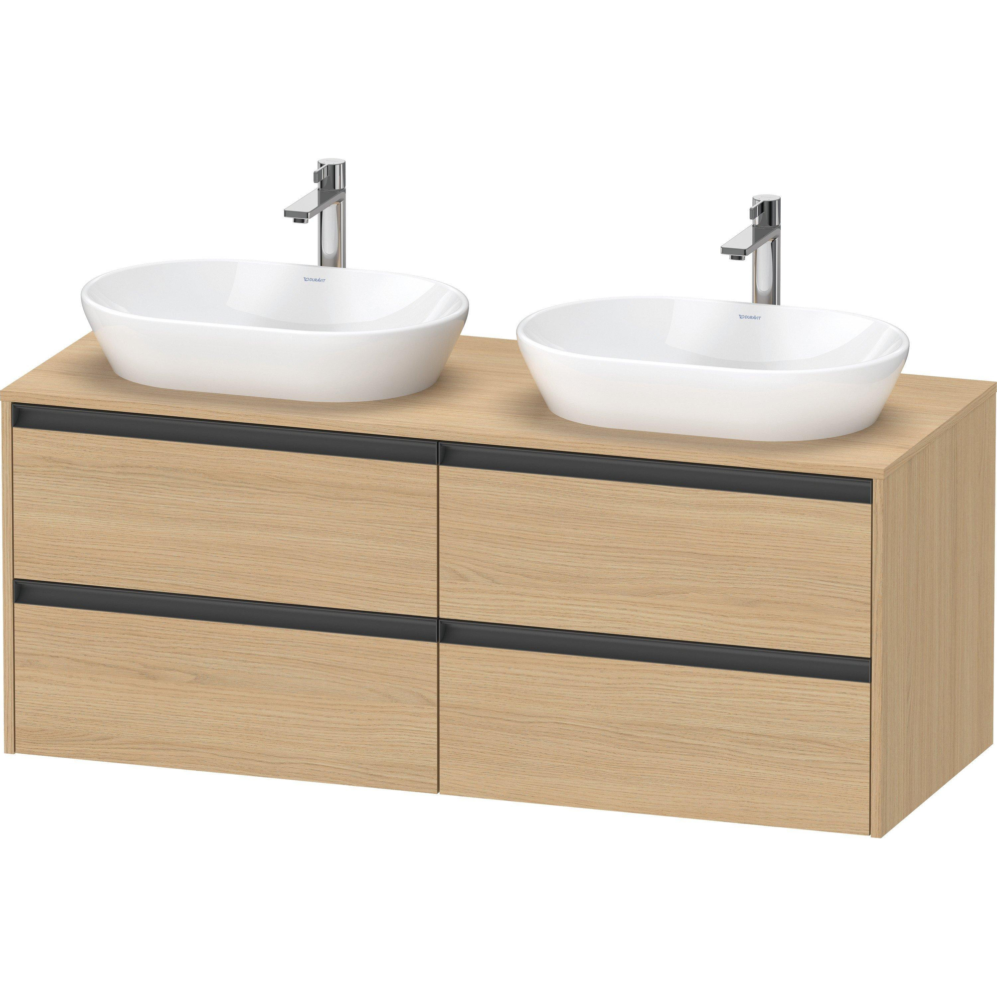 Duravit Ketho 2 wastafelonderbouwkast incl. consoleplaat met 4 laden voor dubbele waskommen 140x55x56.8cm met handgrepen antraciet natuur eiken mat