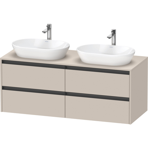 Duravit Ketho 2 wastafelonderbouwkast incl. consoleplaat met 4 laden voor dubbele waskommen 140x55x56.8cm met handgrepen antraciet taupe mat