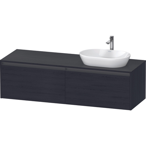 Duravit Ketho 2 wastafelonderbouwkast incl. consoleplaat met 2 laden voor waskom rechts 160x55x45.9cm met handgrepen antraciet eiken zwart mat
