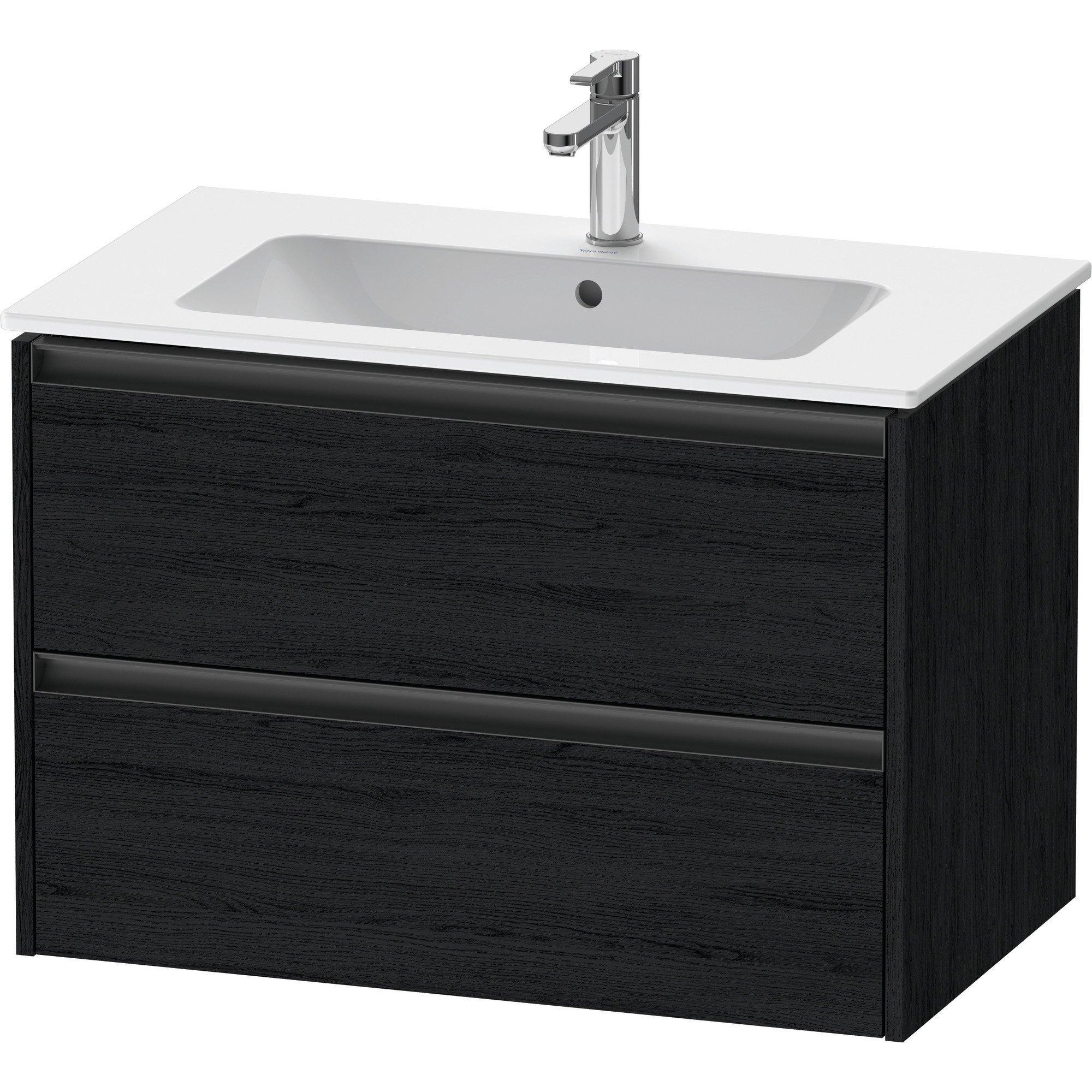 Duravit Ketho 2 wastafelonderbouwkast met 2 laden 81x48x55cm met grepen antraciet eiken zwart mat