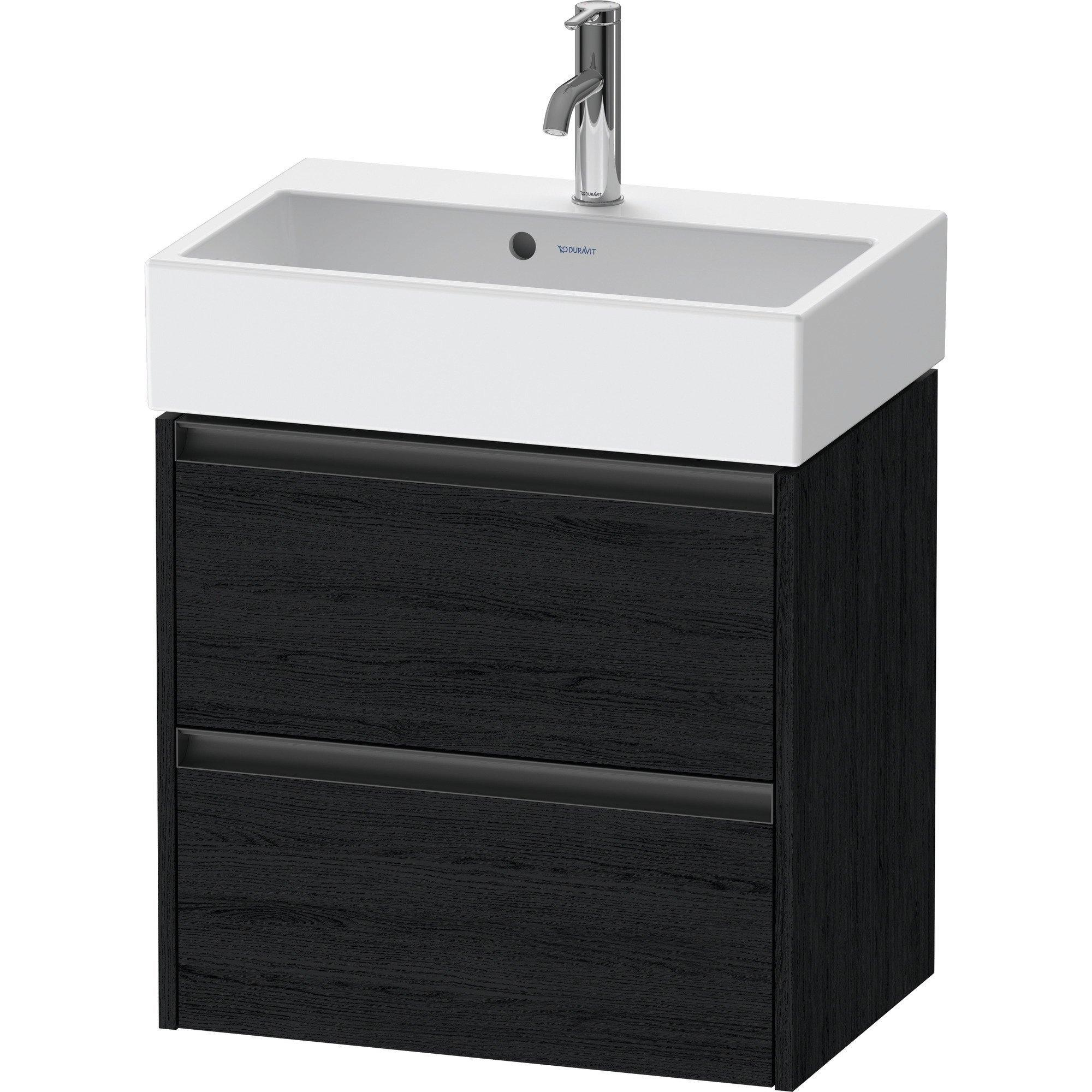 Duravit Ketho 2 Wastafelonderkast - 2 laden - 58.4x39x54.9cm - grepen antraciet - eiken zwart mat