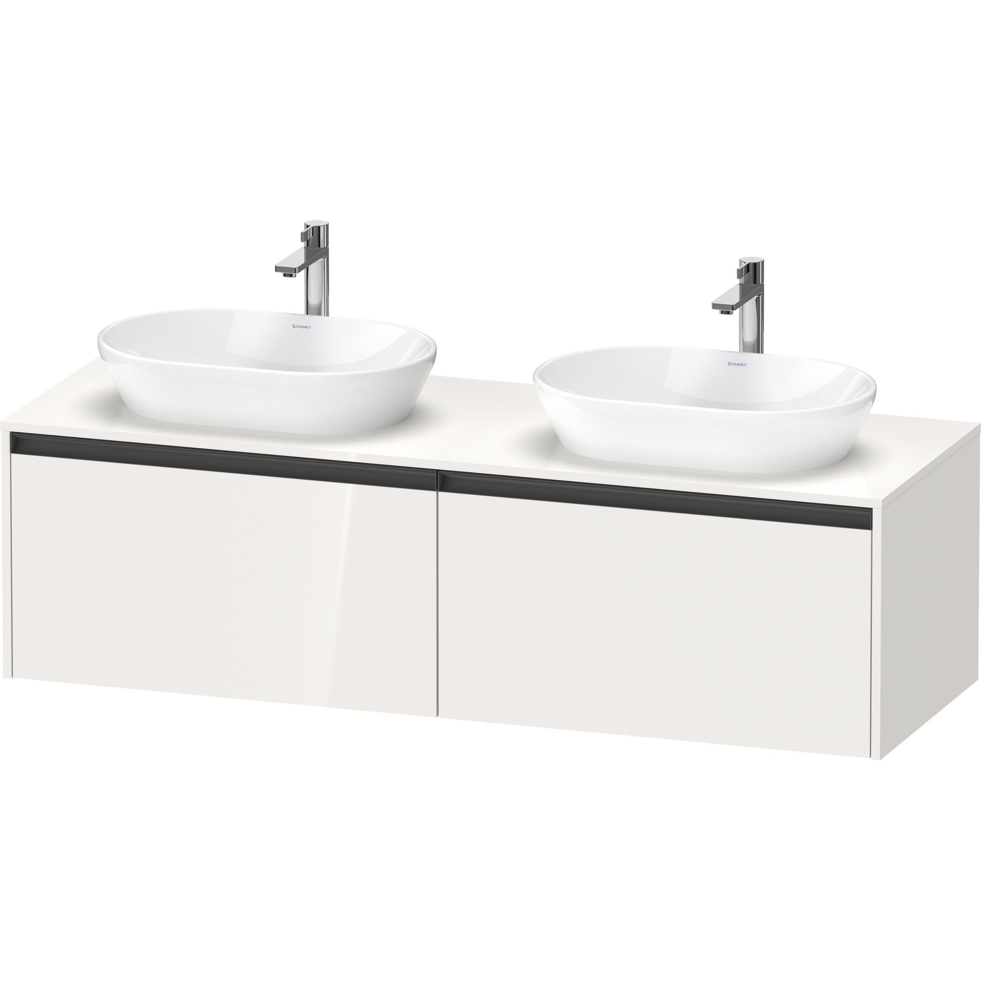 Duravit Ketho 2 wastafelonderbouwkast incl. consoleplaat met 2 laden voor dubbele waskommen 160x55x45.9cm met handgrepen antraciet hoogglans wit