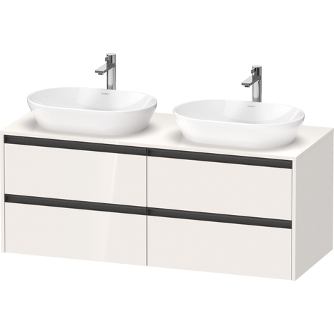 Duravit Ketho 2 wastafelonderbouwkast incl. consoleplaat met 4 laden voor dubbele waskommen 140x55x56.8cm met handgrepen antraciet hoogglans wit