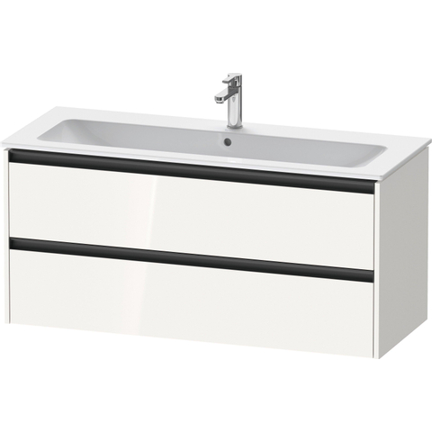 Duravit Ketho 2 wastafelonderbouwkast met 2 laden voor enkele wastafel 121x48x55cm met grepen antraciet hoogglans wit