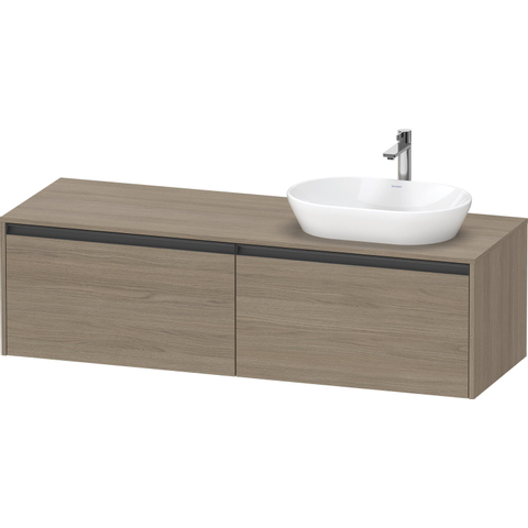 Duravit Ketho 2 wastafelonderbouwkast incl. consoleplaat met 2 laden voor waskom rechts 160x55x45.9cm met handgrepen antraciet eiken terra mat