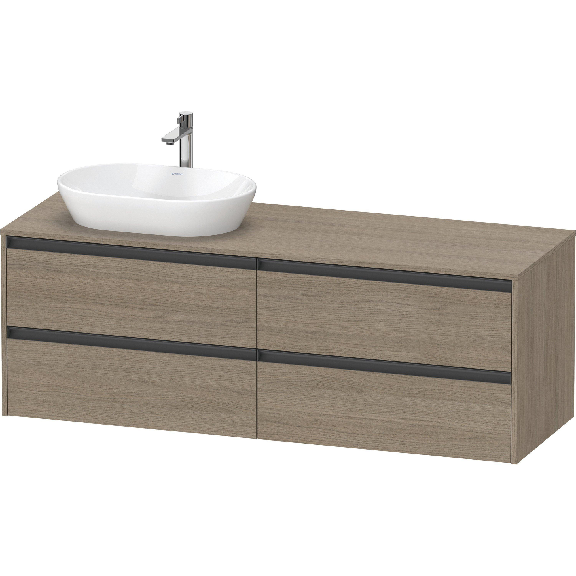 Duravit Ketho 2 wastafelonderbouwkast incl. consoleplaat met 4 laden voor waskom links 160x55x56.8cm met handgrepen antraciet eiken terra mat