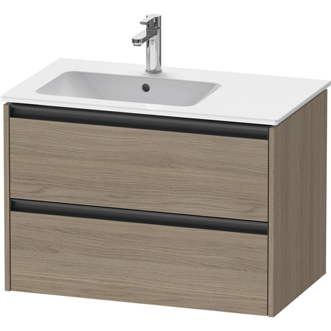 Duravit Ketho 2 wastafelonderbouwkast met 2 laden voor waskom links 81x48x54.9cm met grepen antraciet eiken terra mat