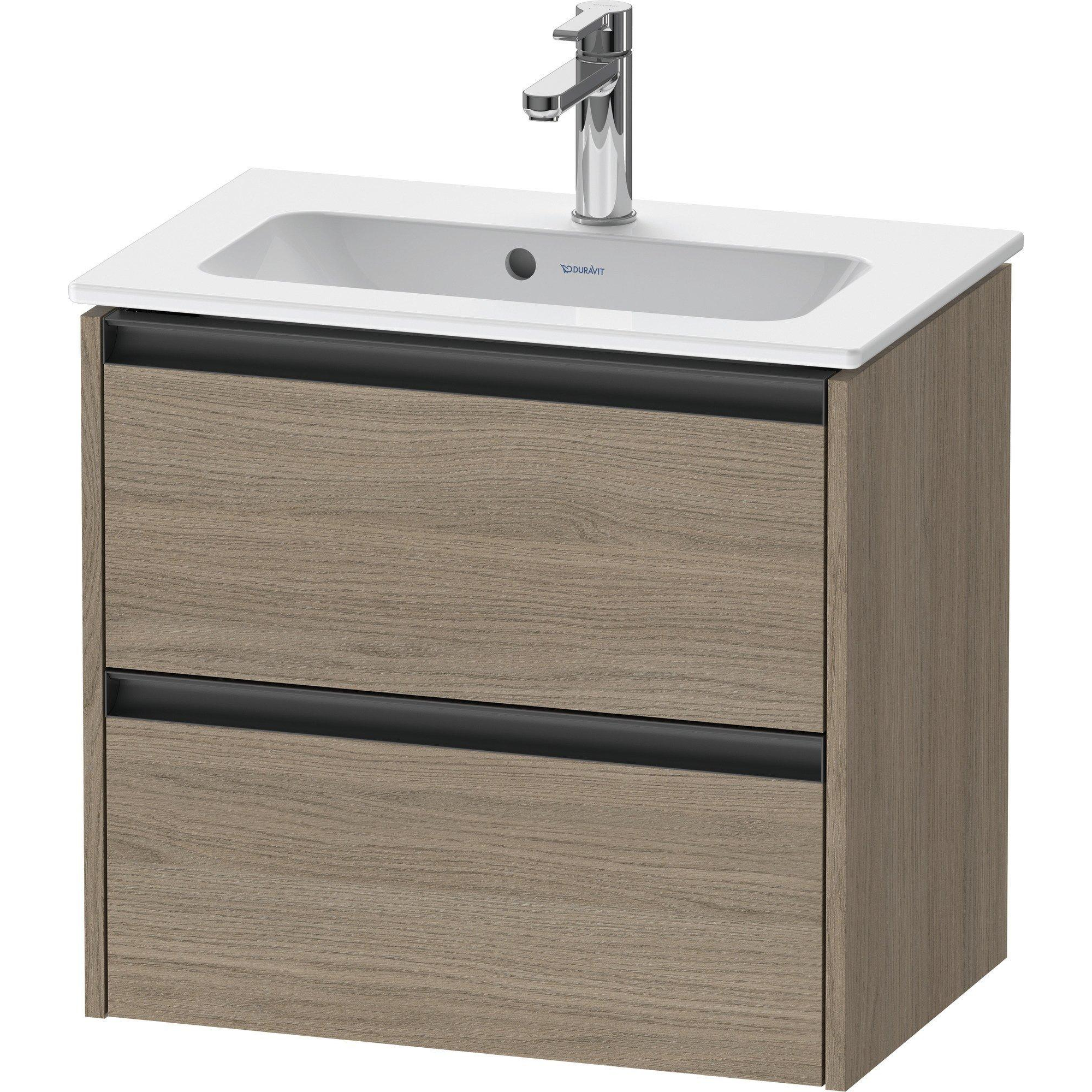 Duravit Ketho 2 wastafelonderbouwkast met 2 laden 61x39x54.9cm met grepen antraciet eiken terra mat